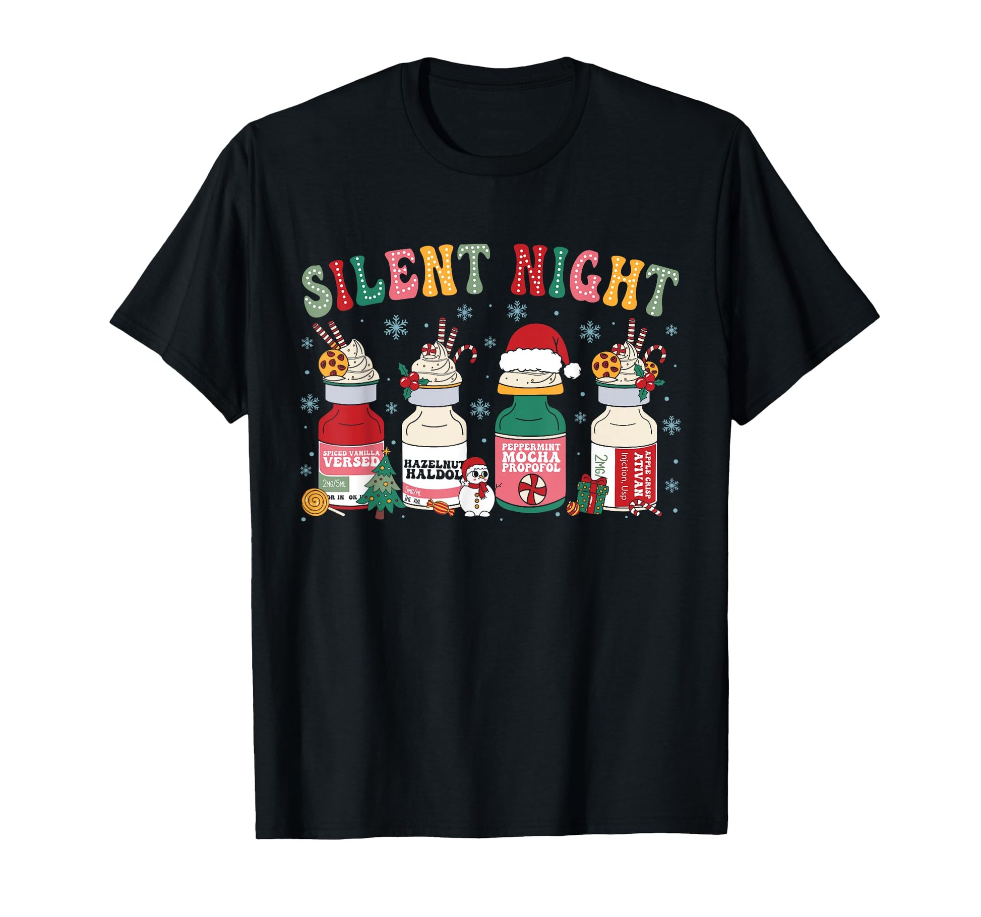 Retro Silent Night Xmas Nurse Christmas Doctor Er Nurse T-Shirt