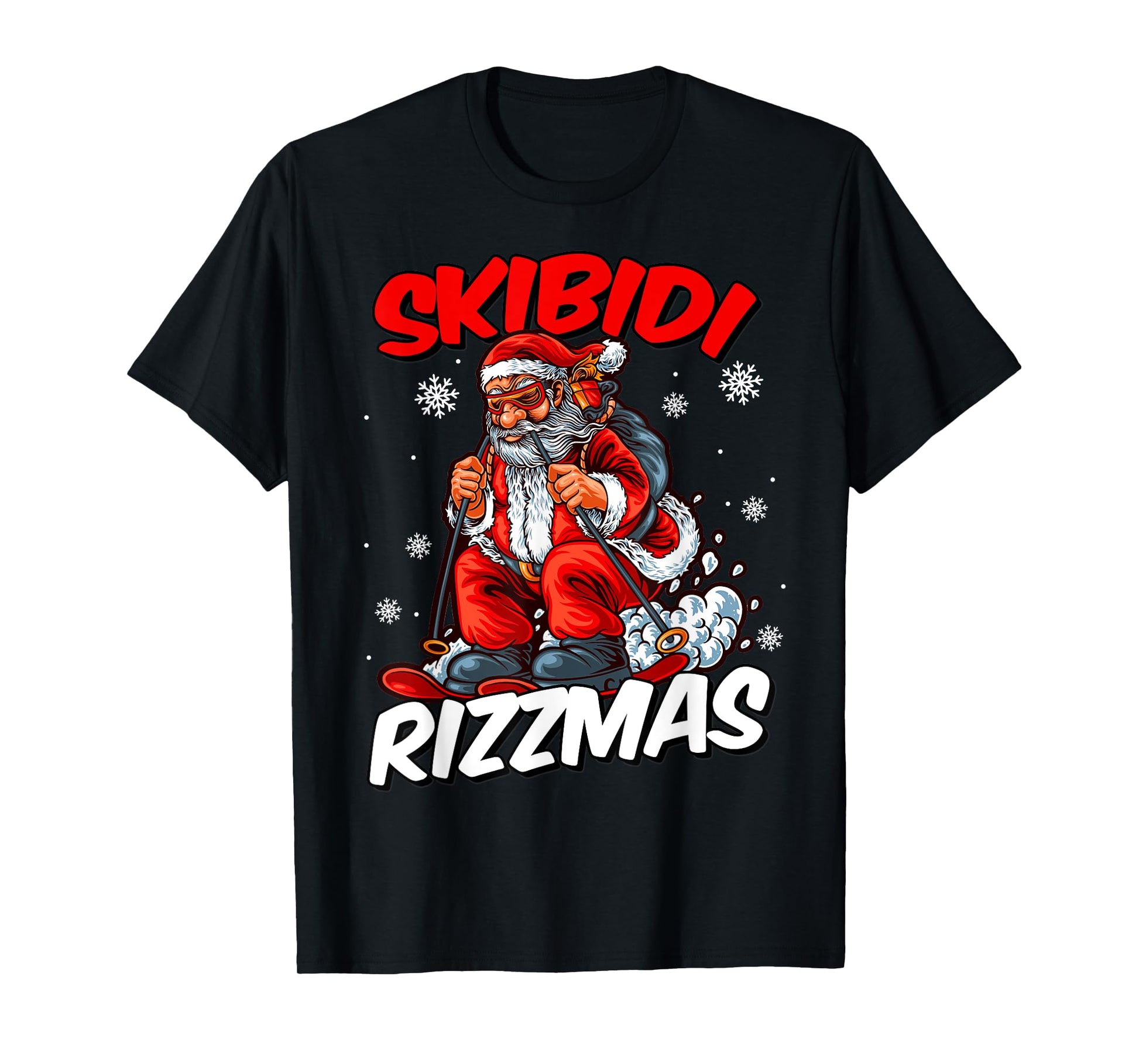 Retro Skibidi Rizzmas Funny Santa Clause Skiing_Xmas T-Shirt