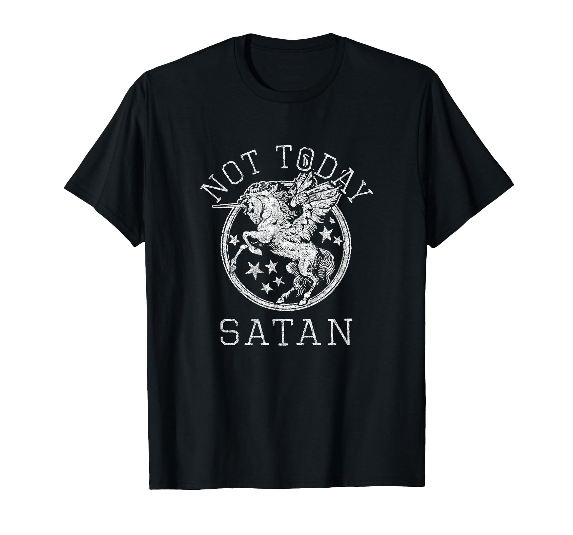 Retro Style 80s 1980s Unicorn Pegasus Not Today Satan T-Shirt