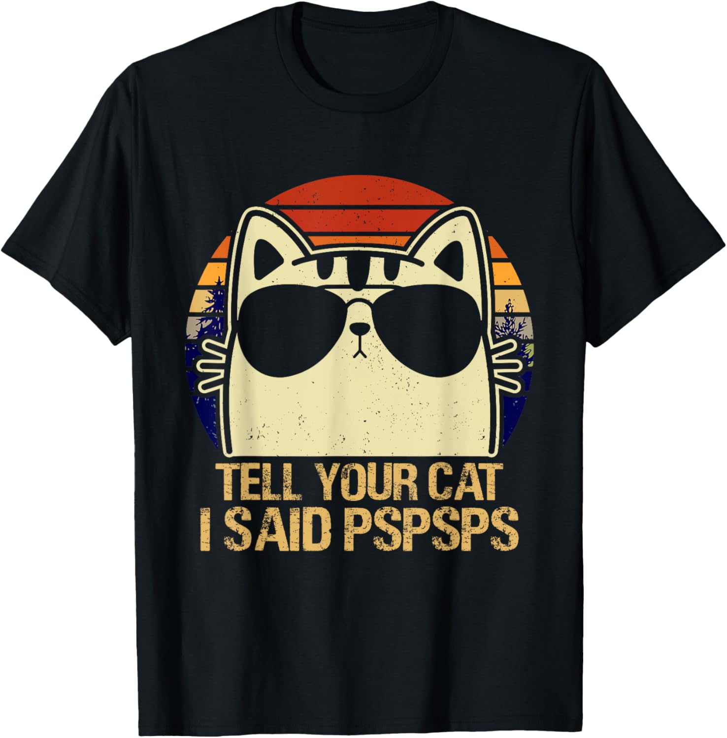 Retro Vintage Cool Funny Cat Tell Your Cat I Said Pspsps T-Shirt