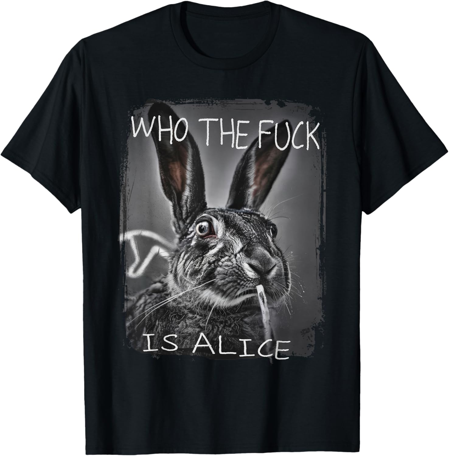 Retro Who The F_ck Is Alice Funny Rabbit T-Shirt