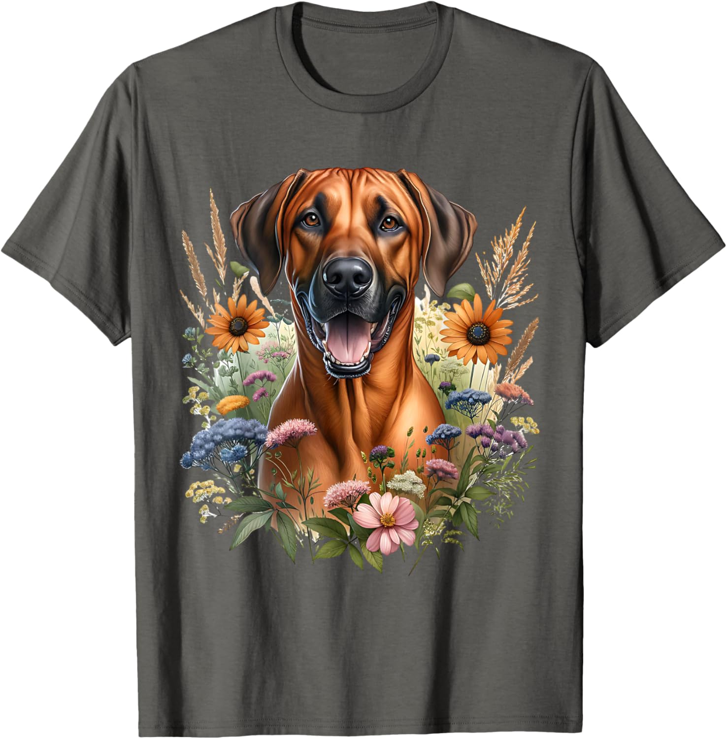 Rhodesian Ridgeback Dog Summer Wildflowers Artwork T-Shirt
