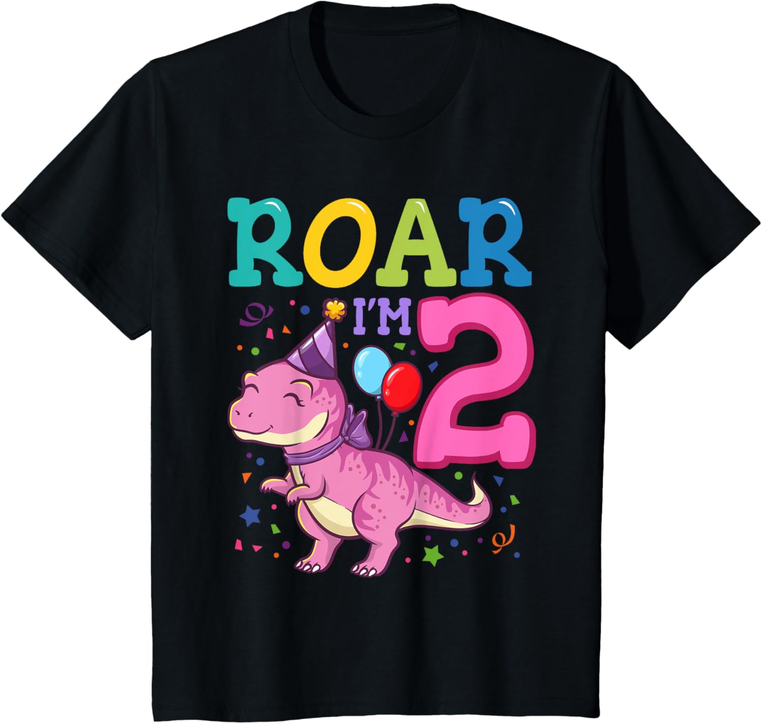 Roar Im 2 Year Old Dinosaur Girl 2nd Birthday Party T-Shirt