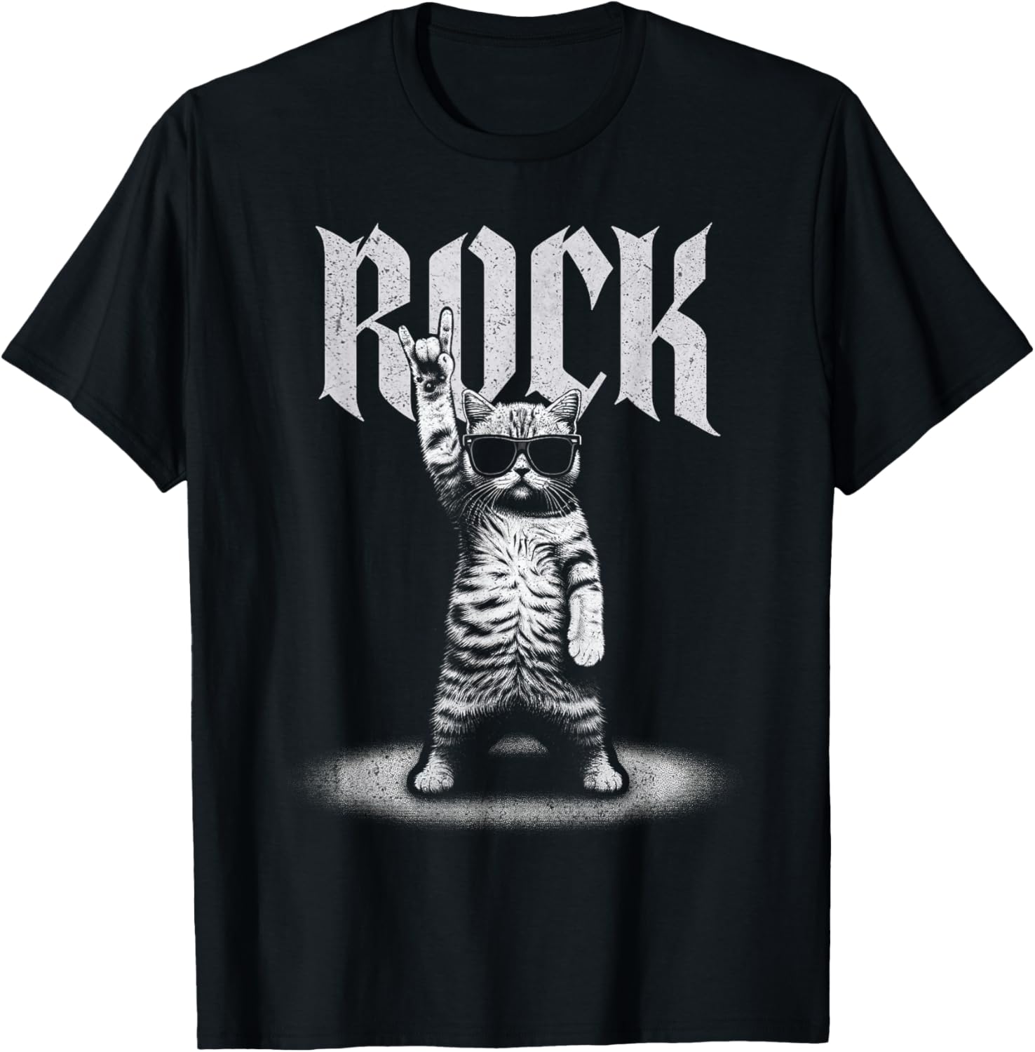 Rock On Cat Rock Music Gift Men Kids Women Funny Cat T-Shirt