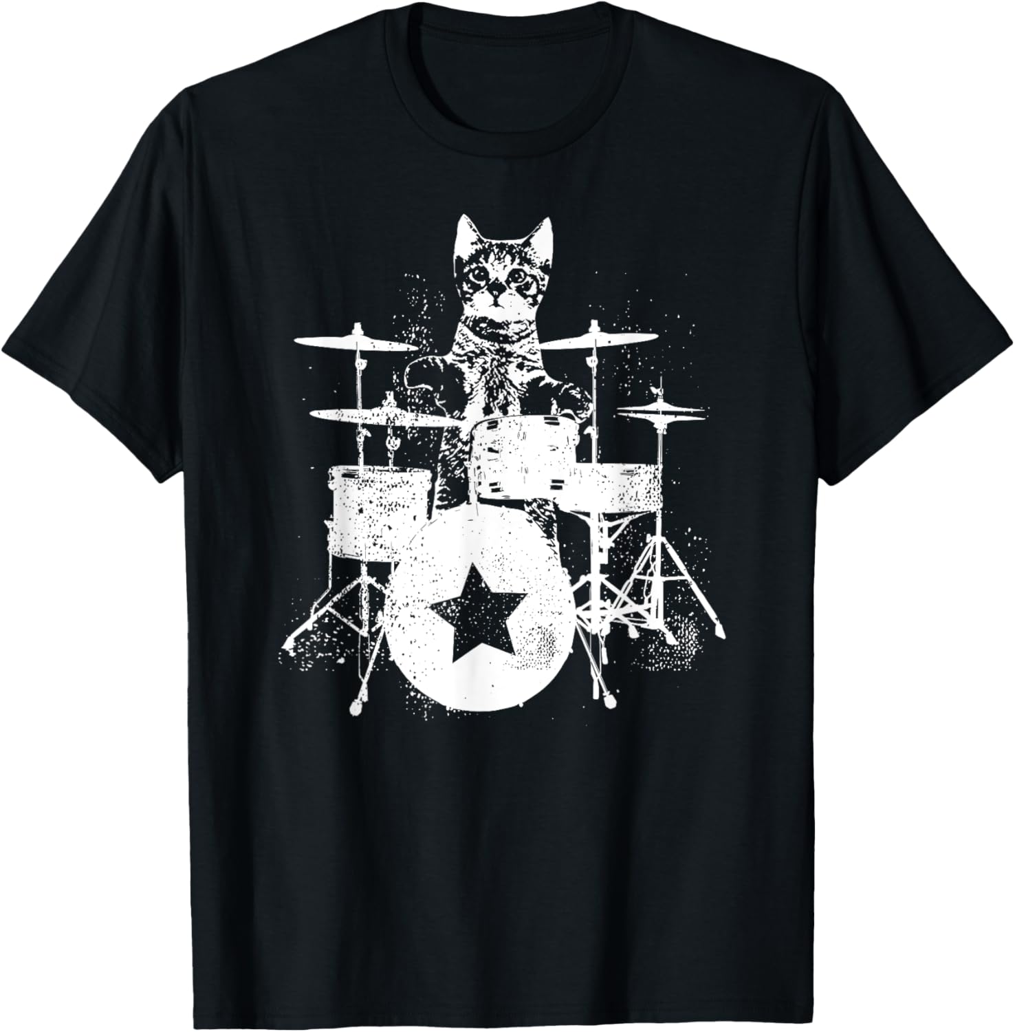 Punk Rockstar Kitten Kitty Cat Drummer Playing Drums Graphic T-Shirt