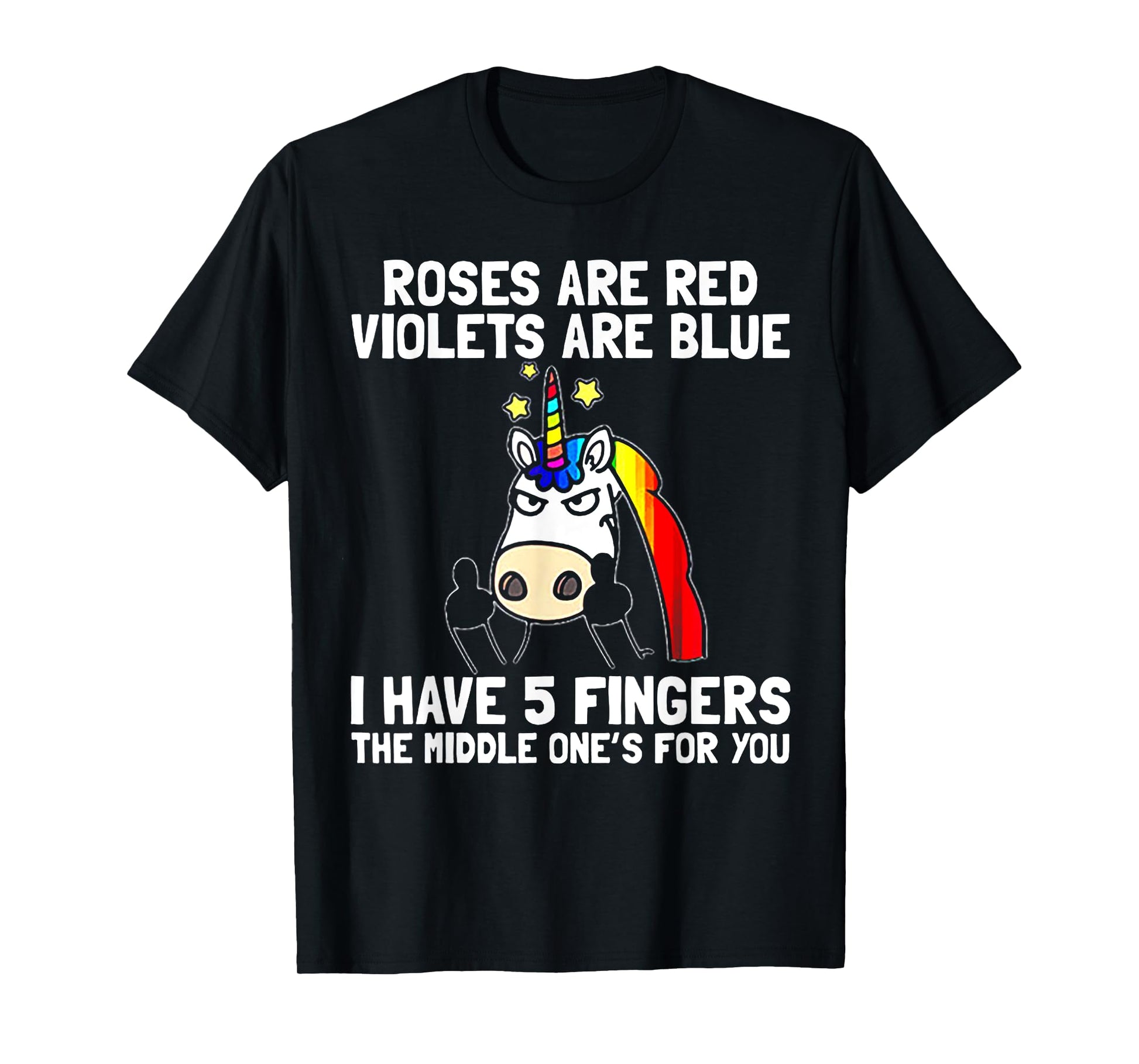 Roses Are Red Violets Aare Blue I Have 5 Fingers Unicorn T-Shirt