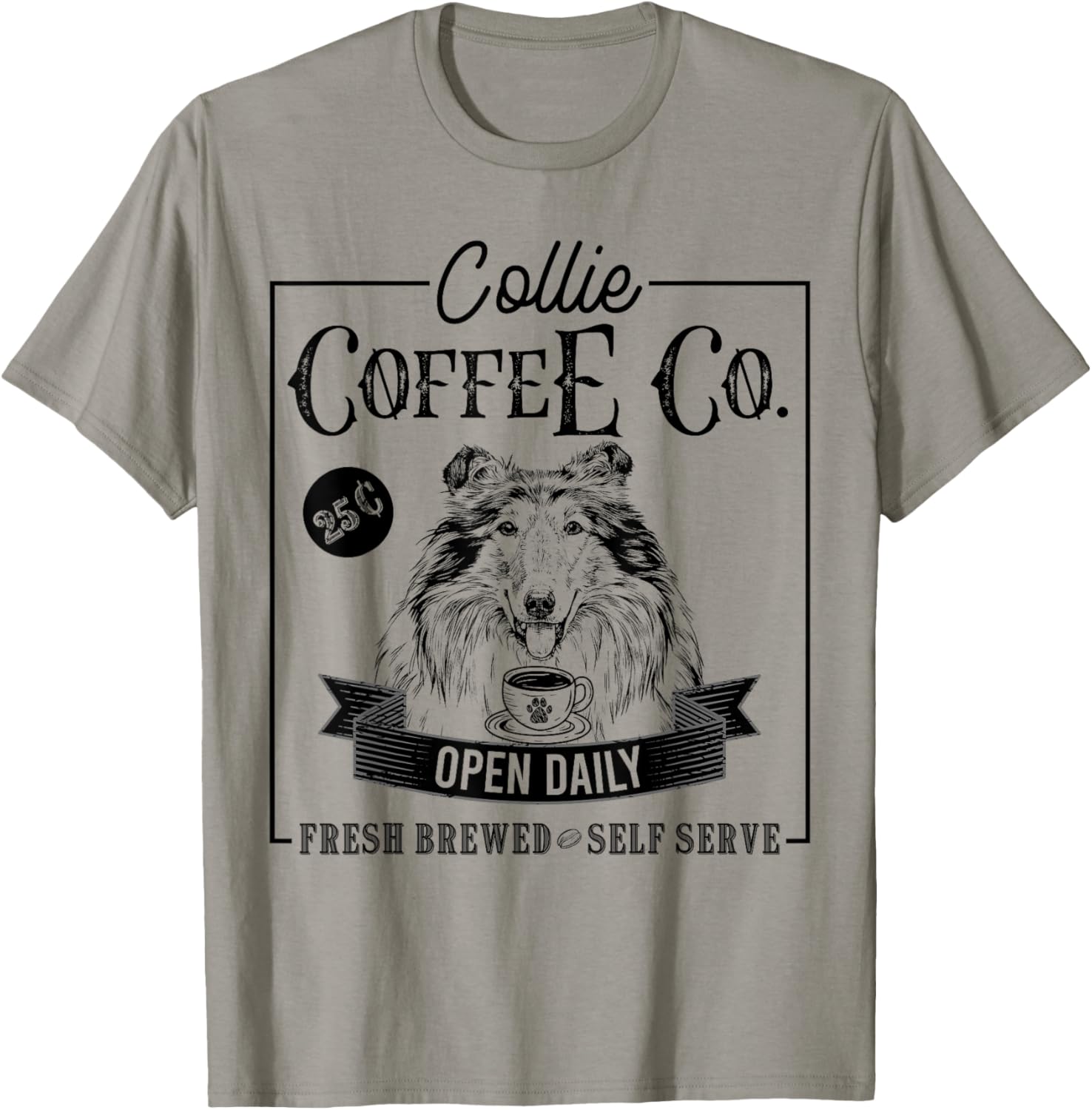 Retro Rough Collie Coffee Funny Dog Mom Coffee Lover T-Shirt