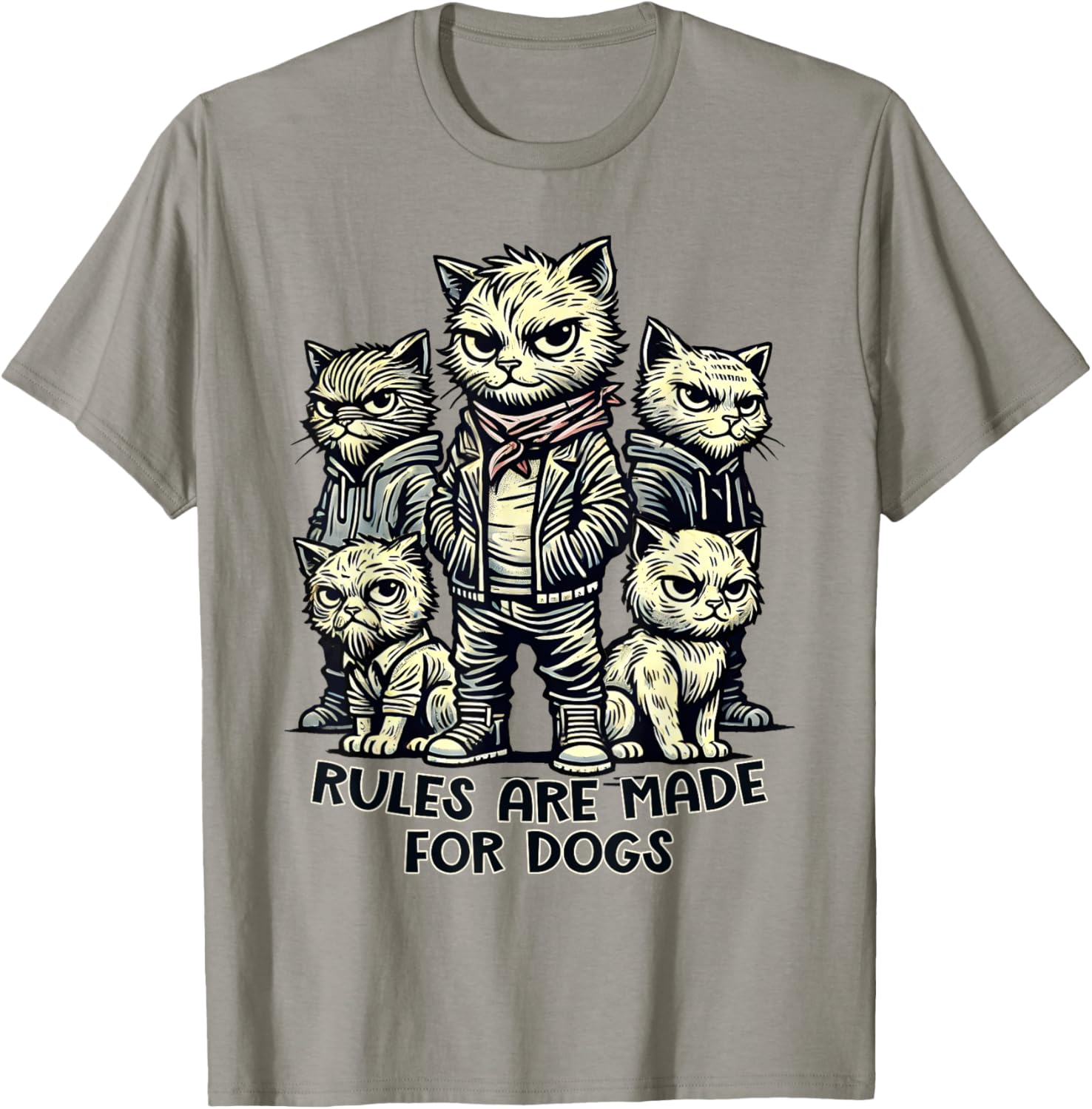 Rules Are for Dogs Gang of Cats Sarcastic and Funny Cat T-Shirt