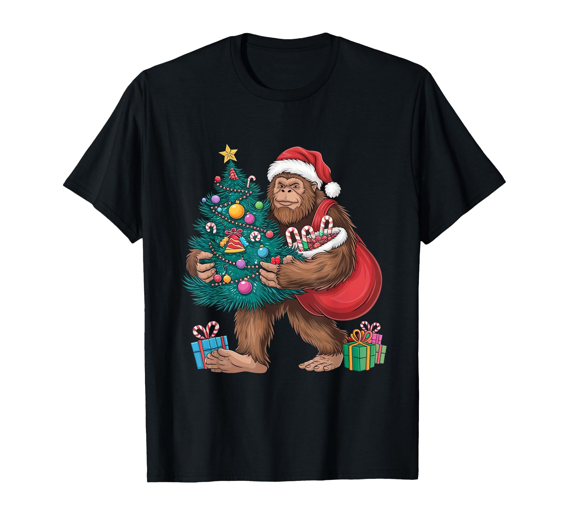 Santa Bigfoot Christmas Tree Lights Xmas Sasquatch Lovers T-Shirt