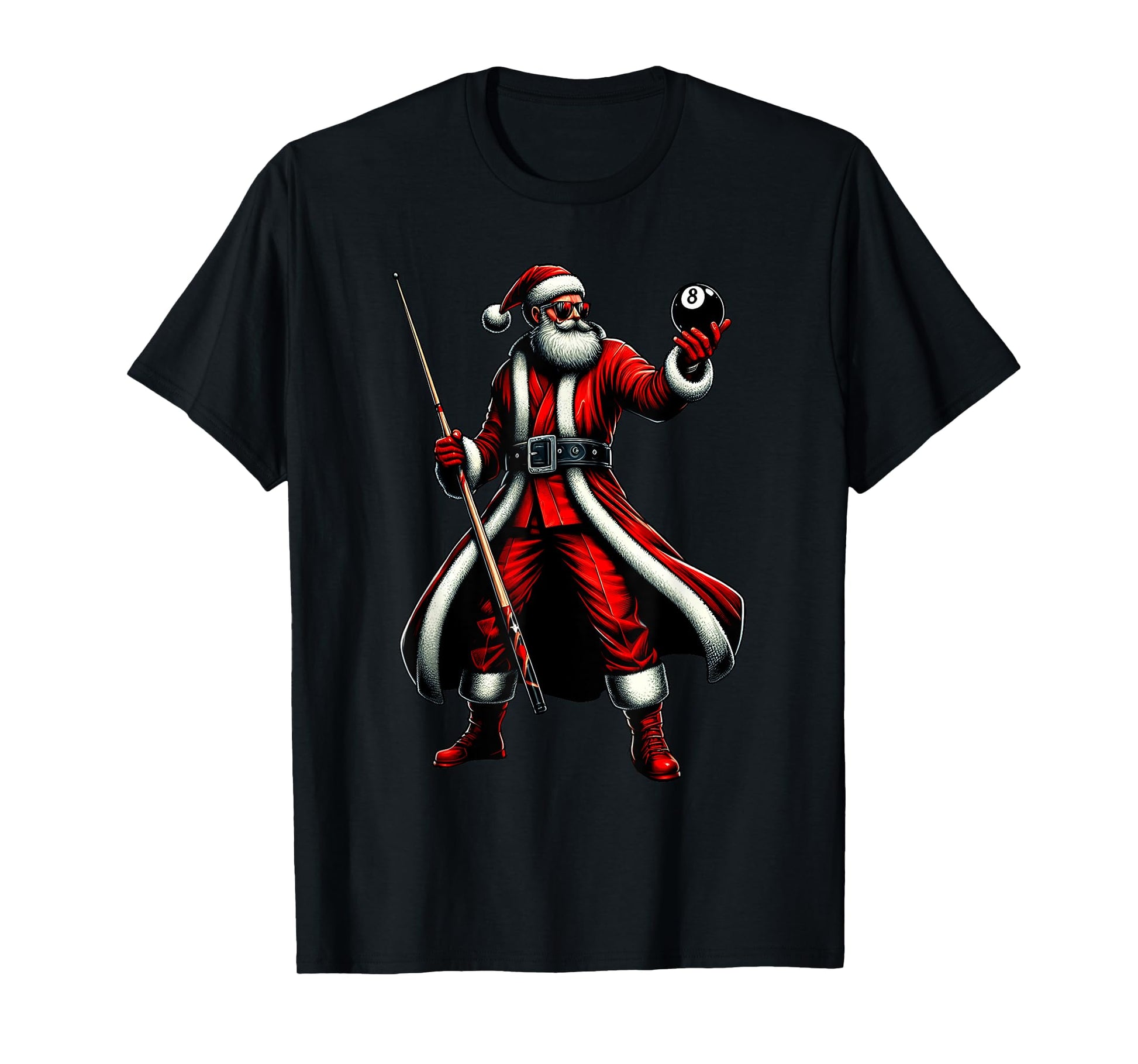 Santa Playing Billiards Men Boys Christmas Billiards Player T-Shirt