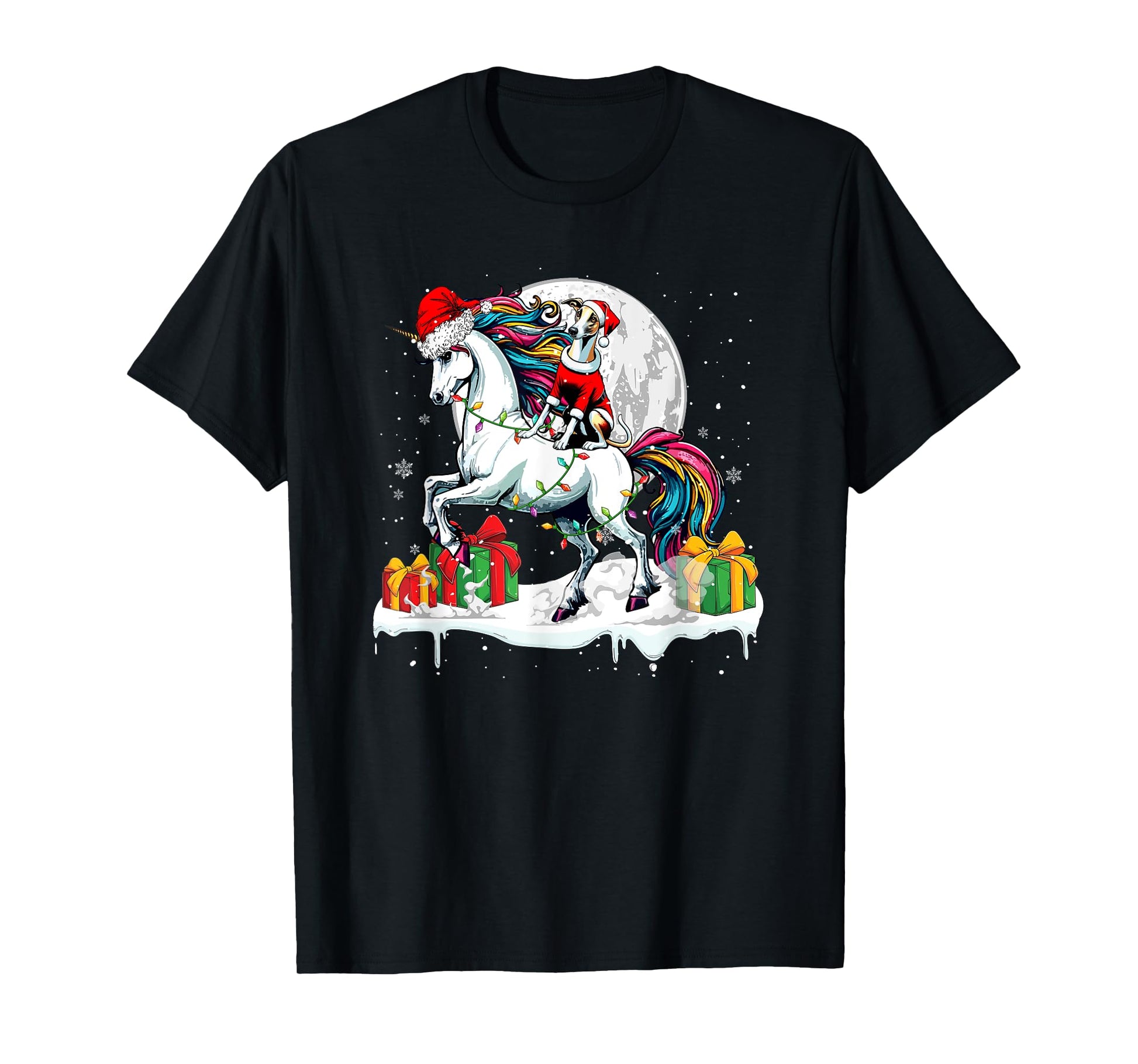 Santa Whippet Riding Unicorn Christmas Owner Kids Family T-Shirt