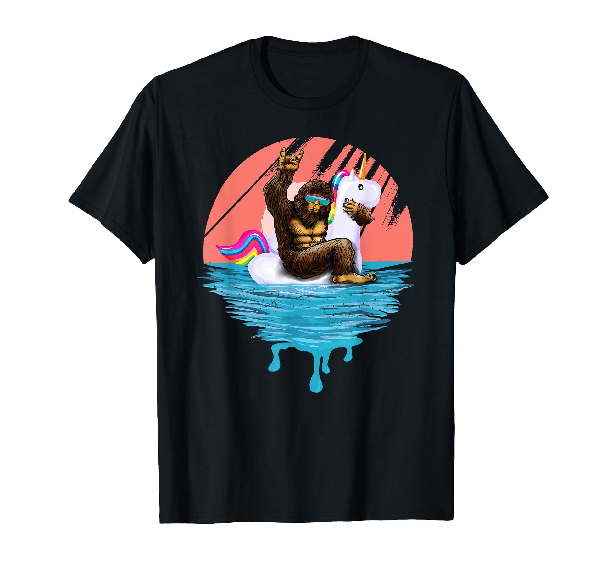 Sasquatch Riding Unicorn Floaty Pool Party Outfit Bigfoot T-Shirt