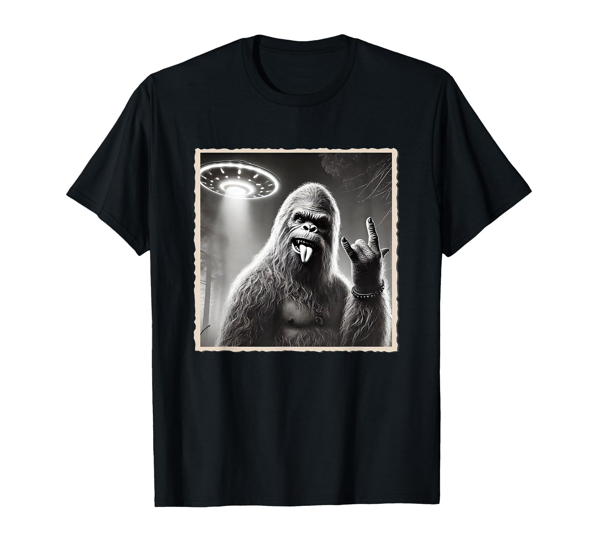 Sasquatch Selfie, Bigfoot & UFO, Rock On, Rocker, Rock Hand T-Shirt