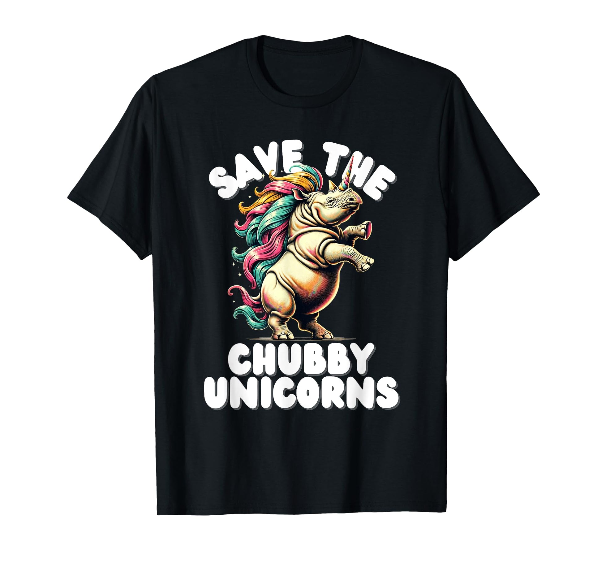 Save the Chubby Unicorn Rhino Colorful Funny Design T-Shirt