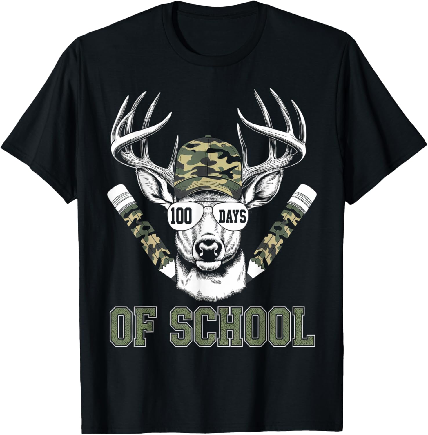 100 Days of School Deer Camouflage for Kids and Teachers T-Shirt