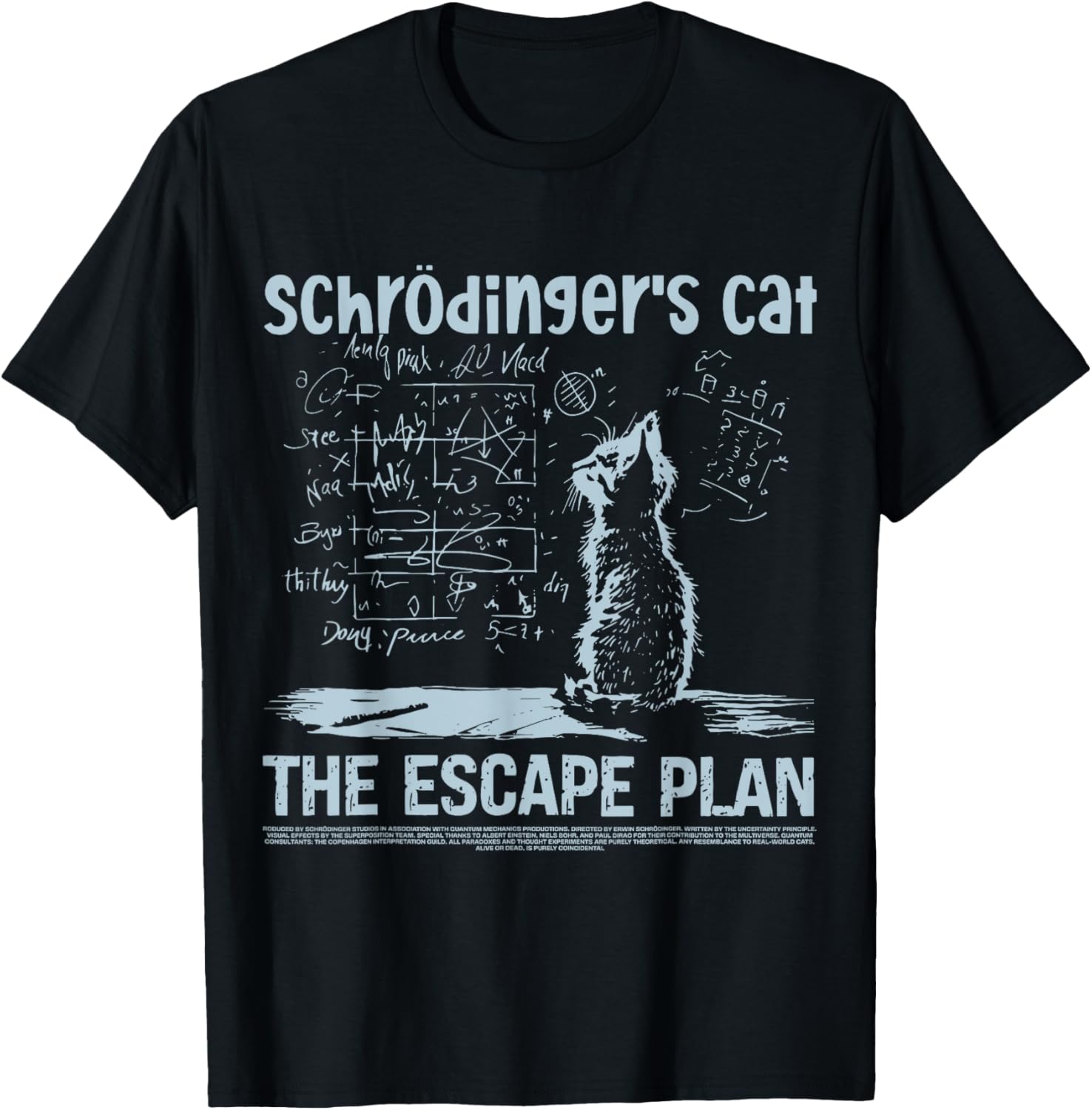 Schrödingers Cat the Escape Plan Funny Science Teacher T-Shirt
