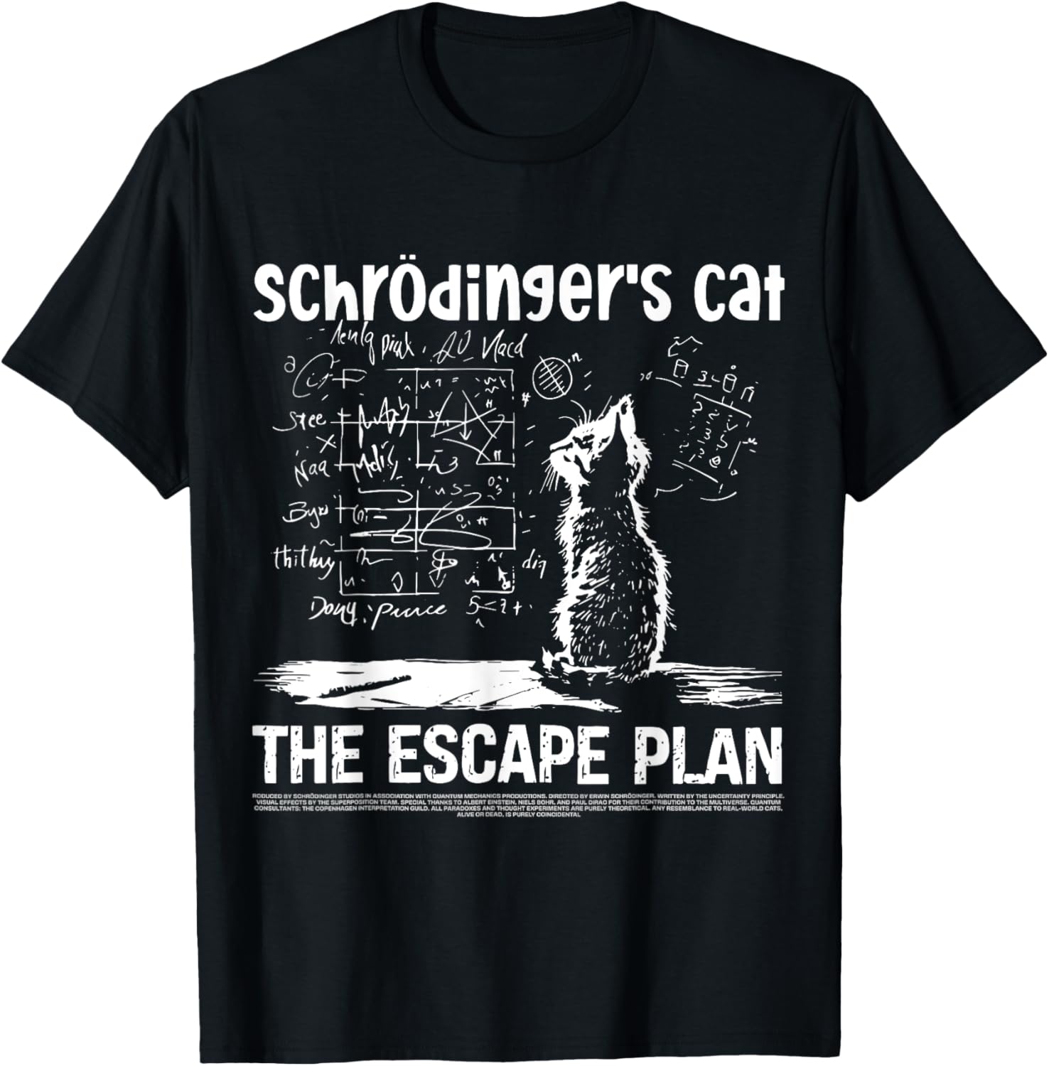 Schrödingers Cat the Escape Plan Funny Science Teacher T-Shirt