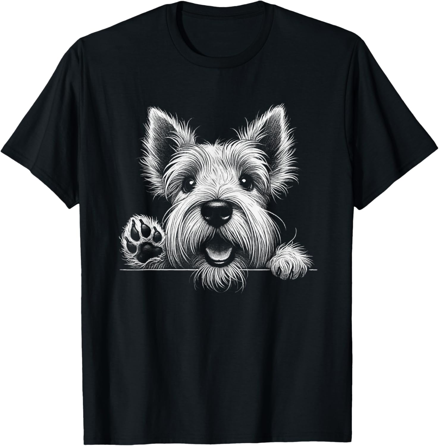 Funny Scottish Terrier Dog Peeking Scottie Art Design T-Shirt