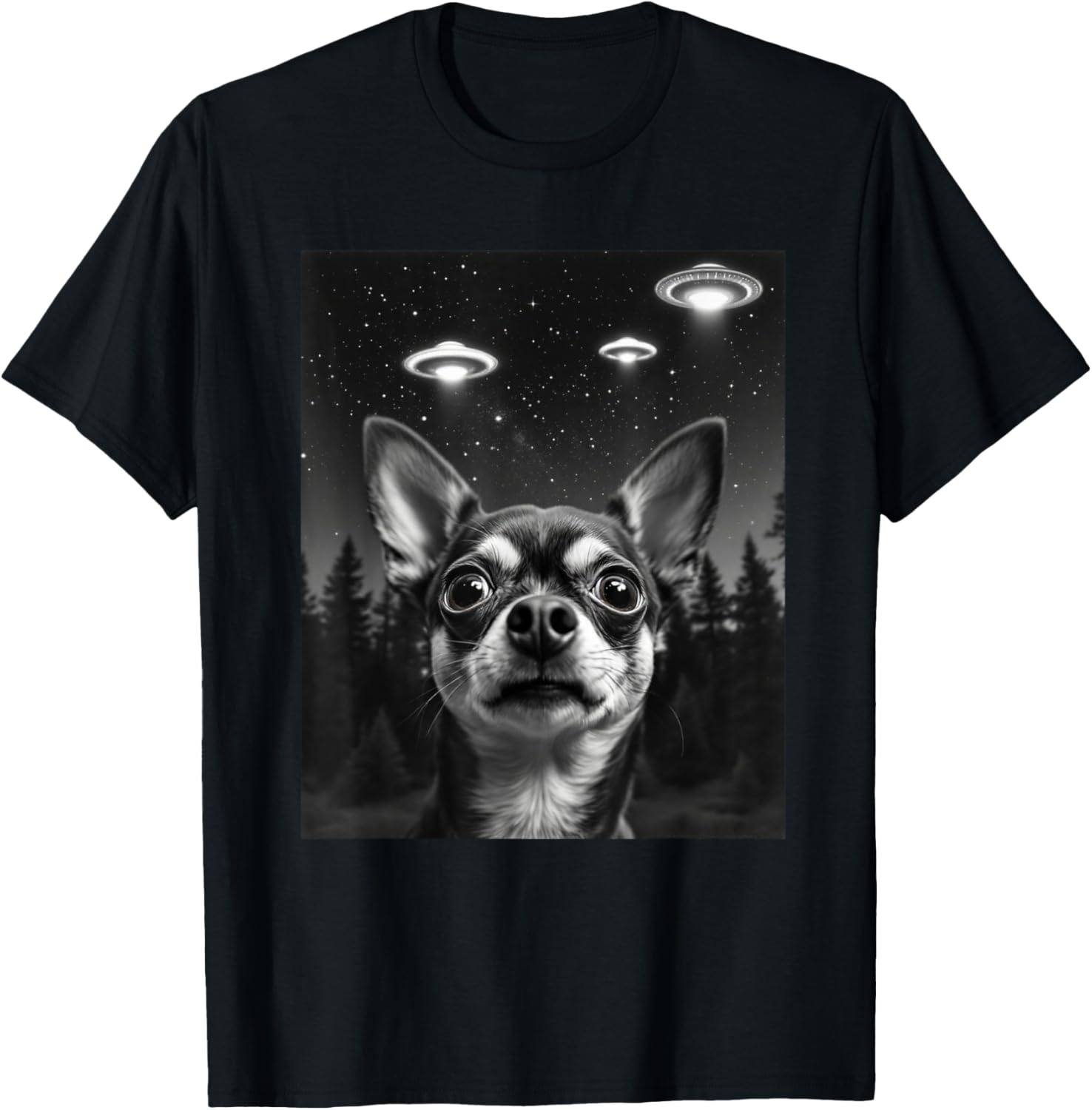 Dog Selfie With Alien UFO Funny Chihuahua Gift Mens Womens T-Shirt