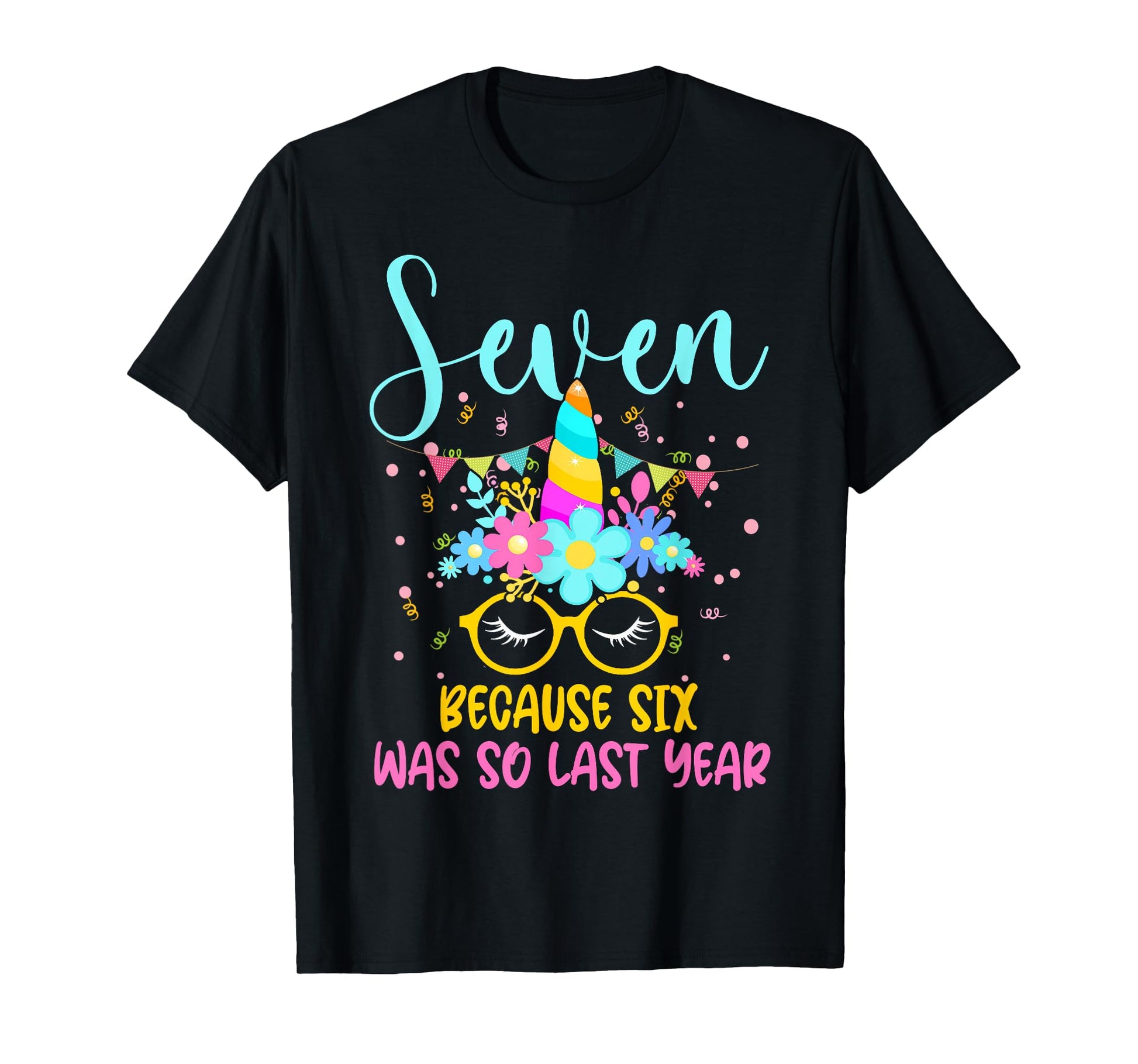 Seven Because Six Was So Last Year Unicorn 7th Birthday T-Shirt