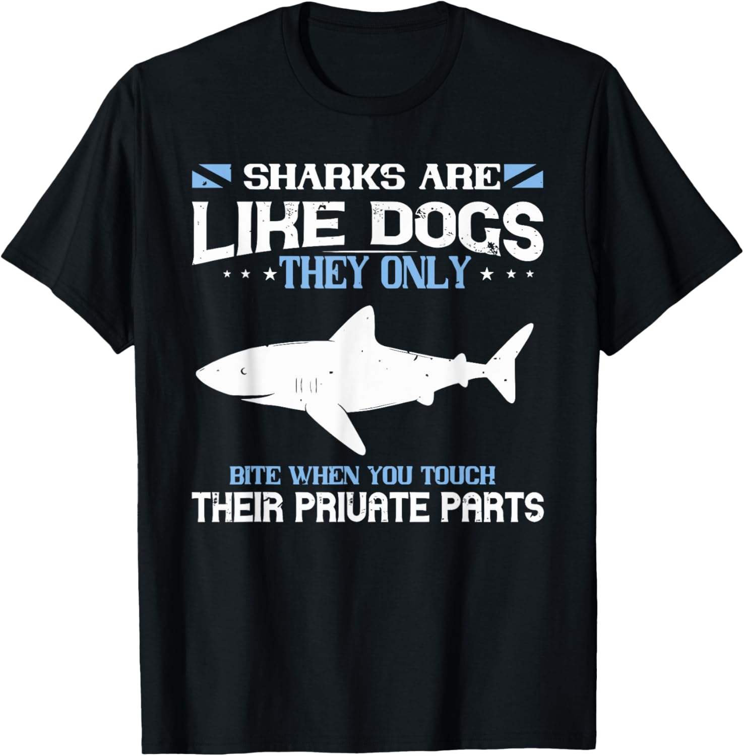 SHARKS ARE LIKE DOGS THEY ONLY BITE WHEN YOU funny design T-Shirt