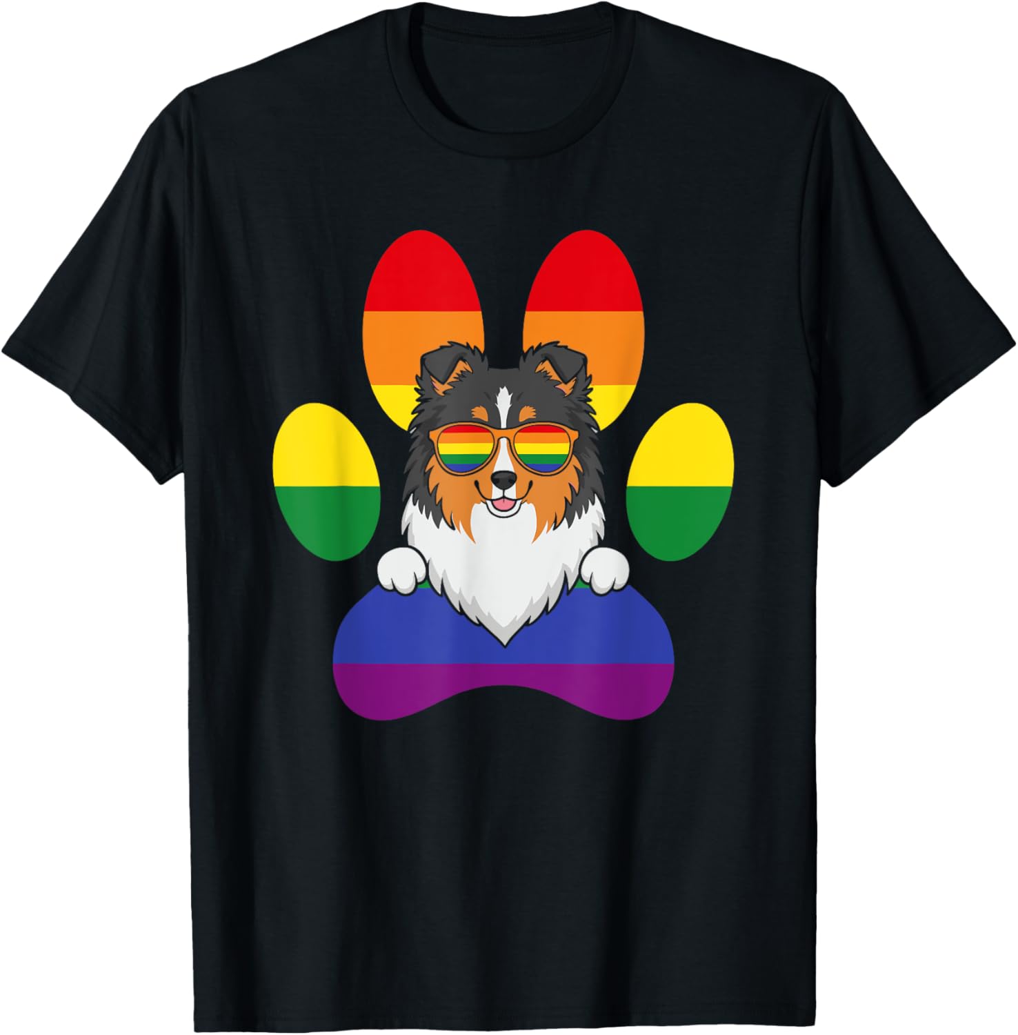 LGBT Shetland Sheepdog Rainbow Dog Paw Lesbian Gay Pride T-Shirt