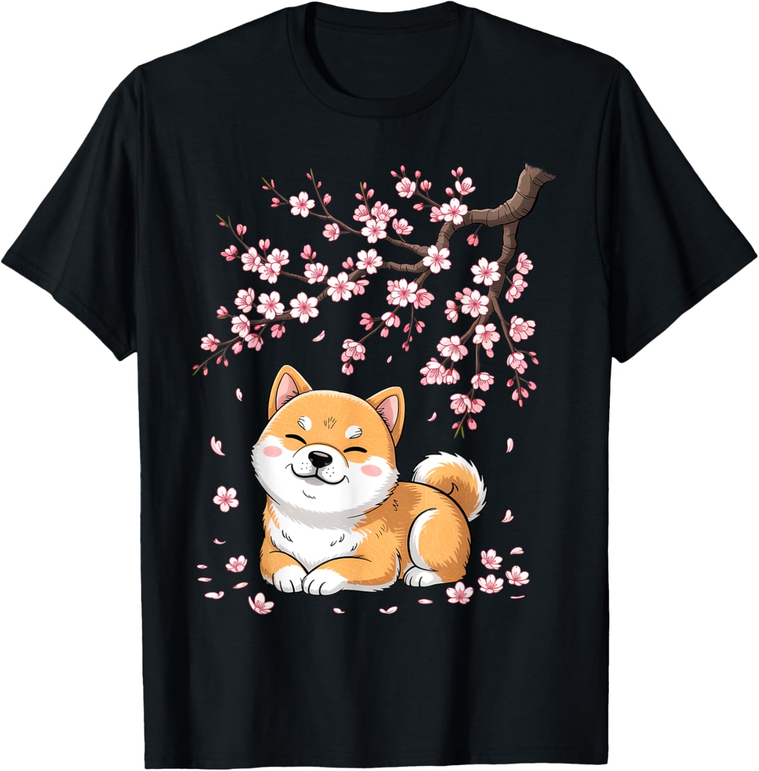 Kawaii Shiba Inu Dog Cherry Blossoms Japanese Sakura Flower T-Shirt
