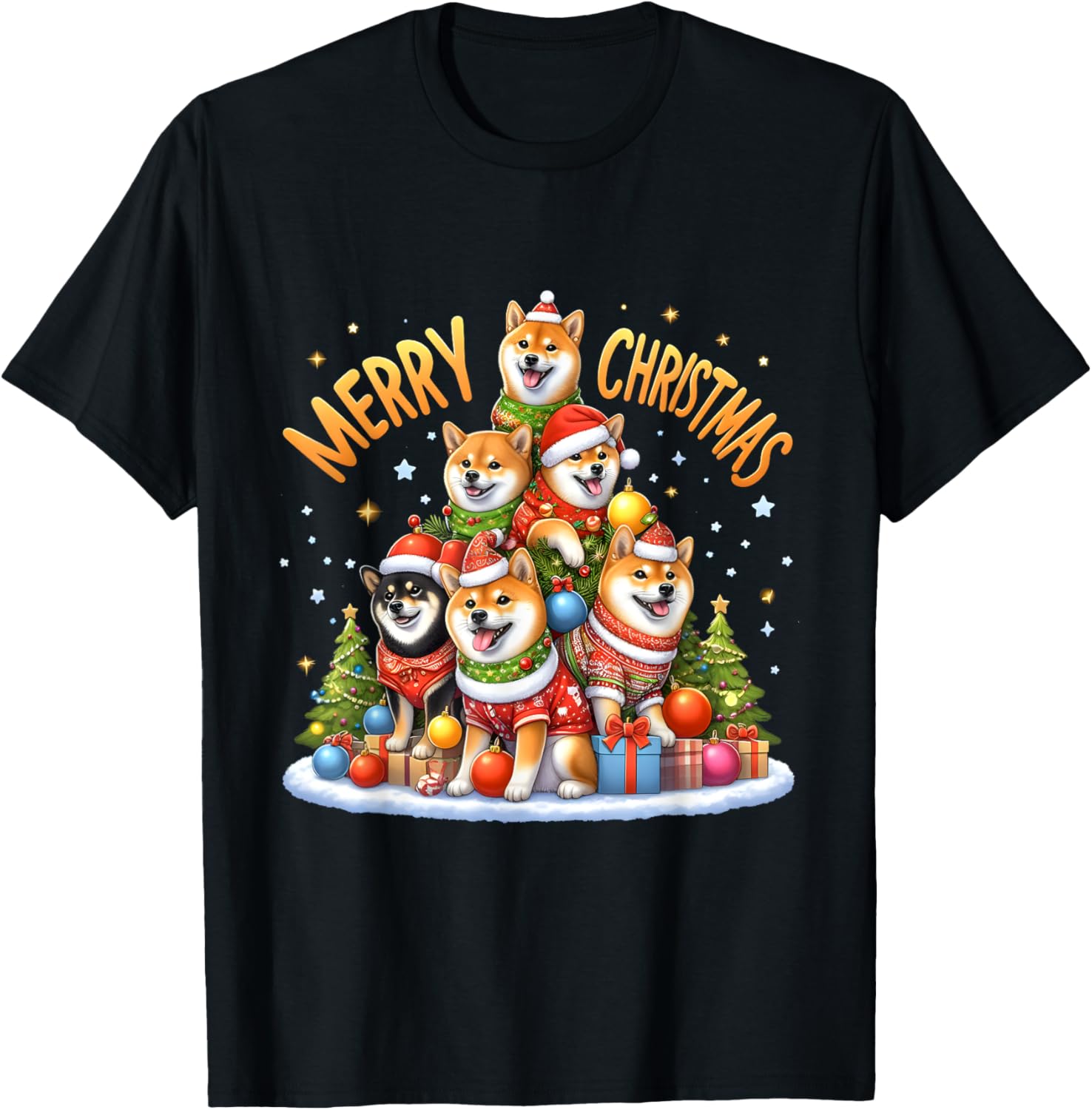 Cute Shiba Inu Dogs Xmas Gift Merry Christmas Christmas Tree T-Shirt