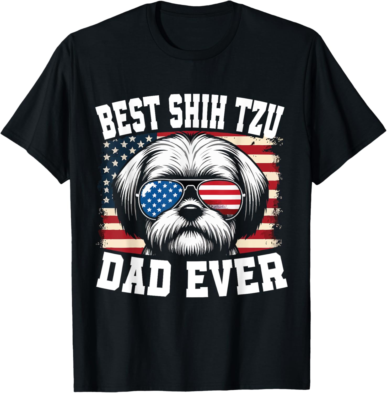 Best Shih Tzu Dad Ever Dog Lover American Flag Father's Day T-Shirt