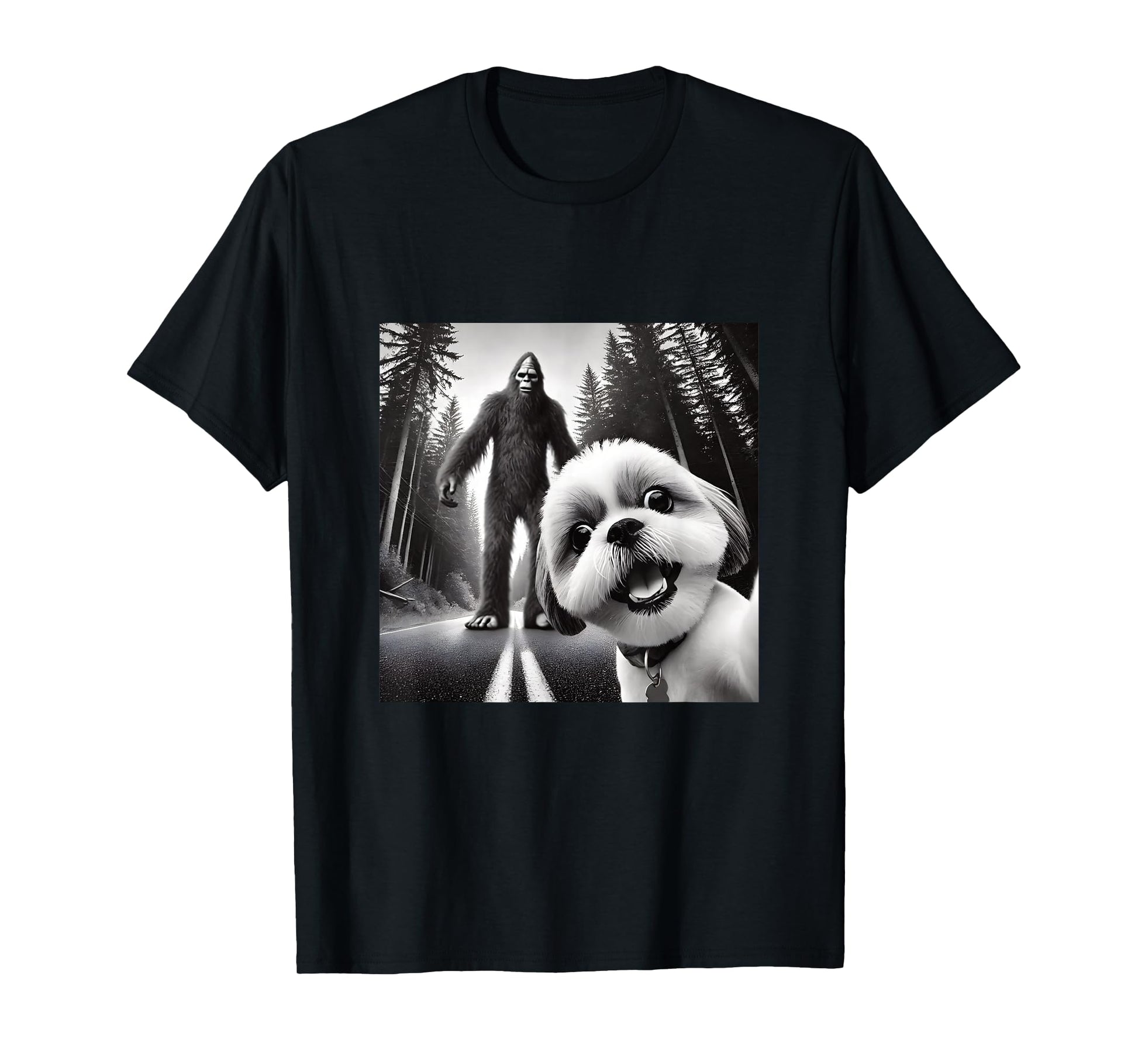 Shih tzu and Bigfoot Adventure in Forest T-Shirt