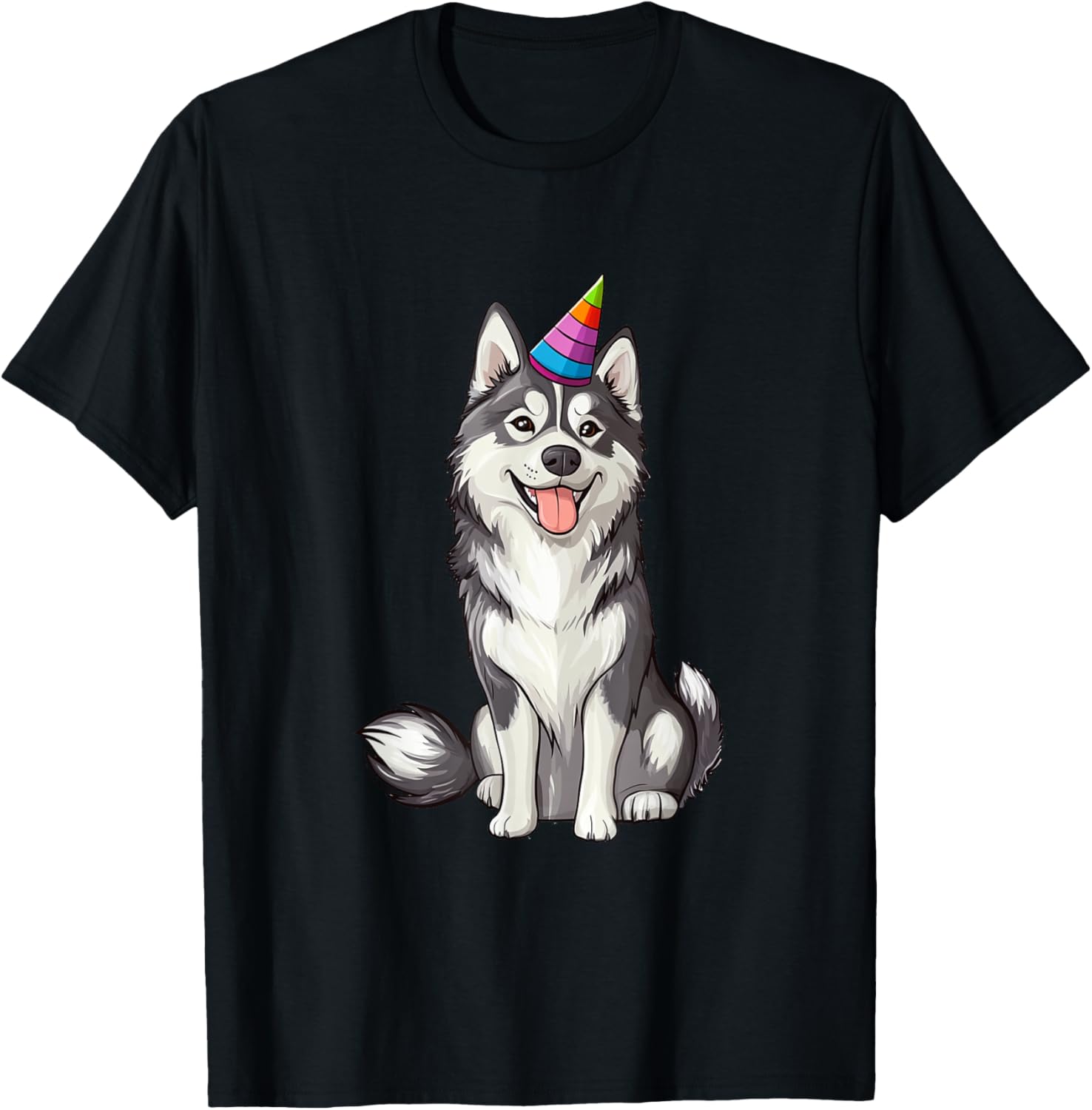 Siberian Husky Birthday Dog Wearing Birthday Party Hat T-Shirt