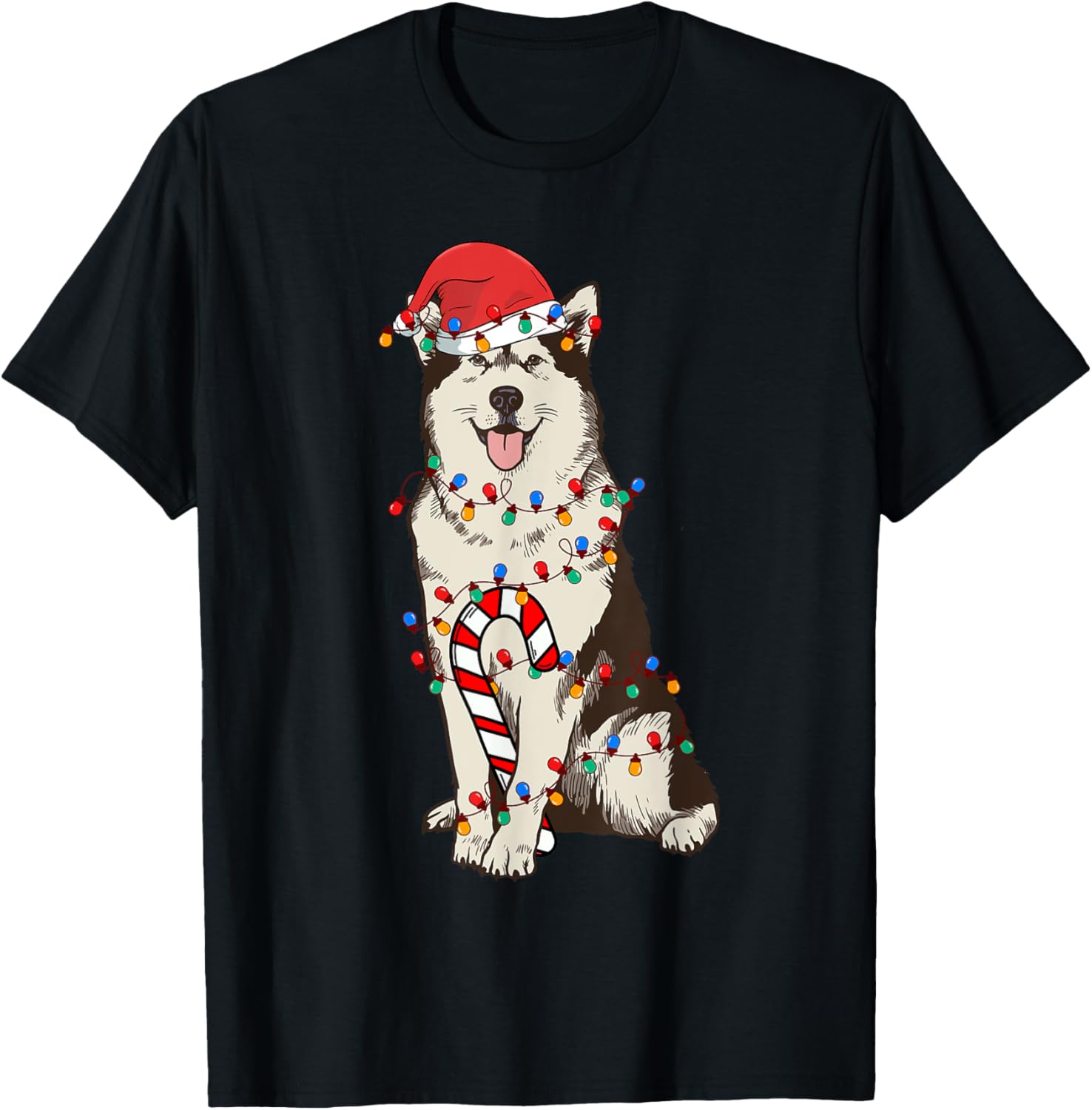 Siberian Husky Santa Christmas Lights Dog Lover Xmas Pajama T-Shirt