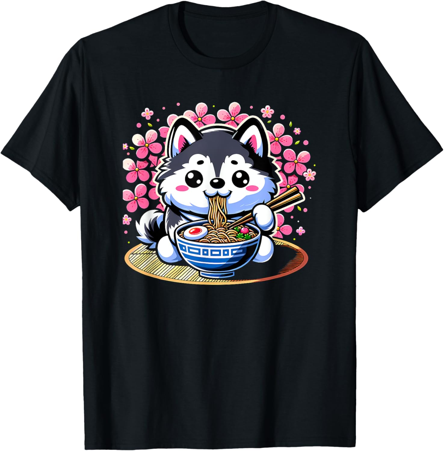 Kawaii Siberian Husky dog Eating Ramen T-Shirt