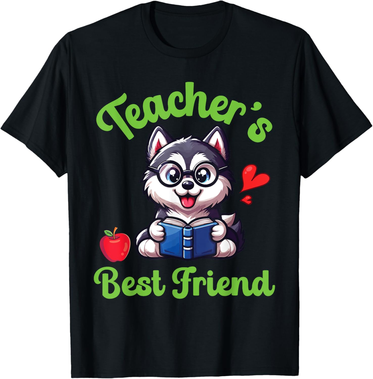 Siberian Husky Dog Reading Book Teacher's Best Friend Mother T-Shirt