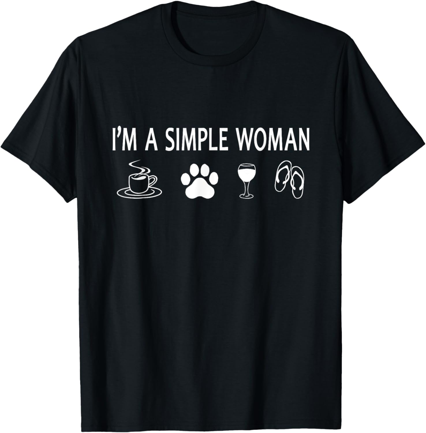Cute I'm A Simple Woman Coffee Dog Paw Wine And Flip Flops T-Shirt