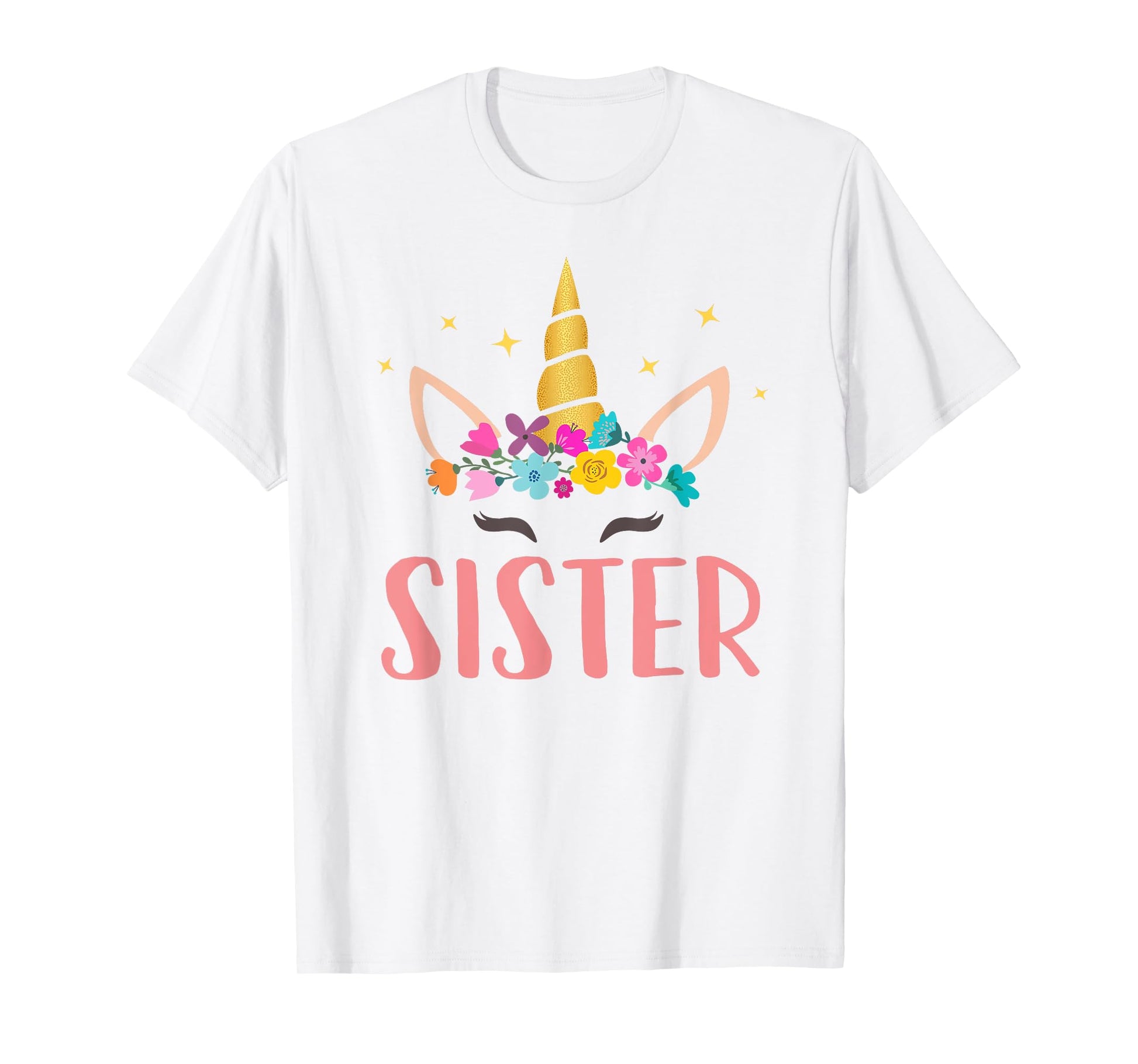 Sister Unicorn Floral Birthday Matching T-Shirt