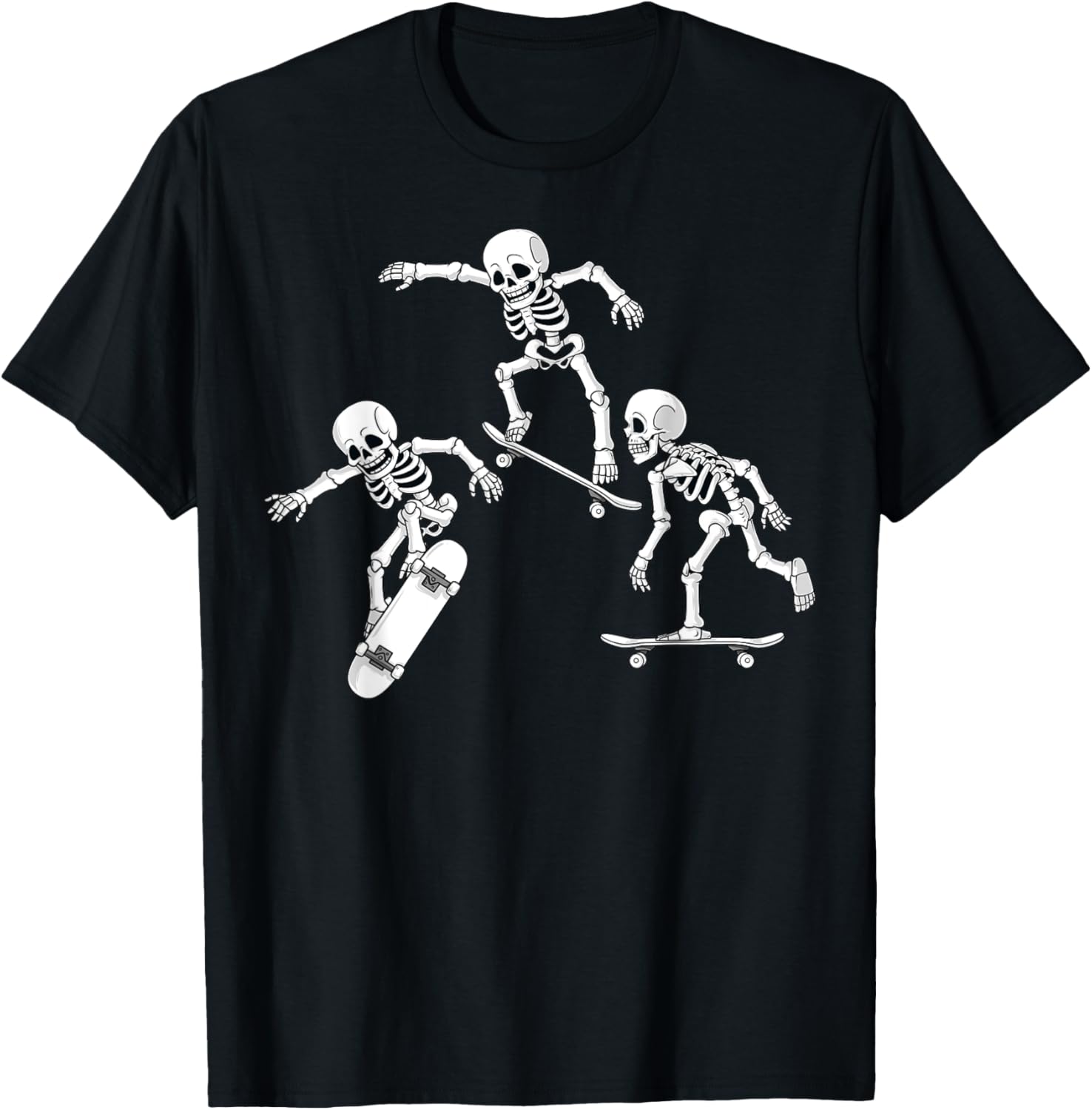 Skateboarding Skeletons Halloween Skater Boys Kids Skate T-Shirt