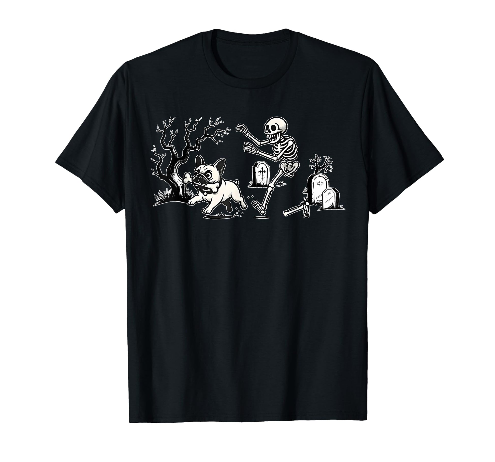Skeleton Chasing French Bulldog Halloween Dog Mom Pet Lover T-Shirt