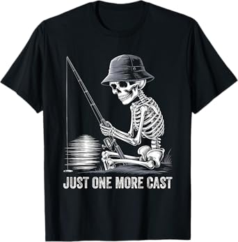 Skeleton Fishing Gifts Just One More Cast Funny Birthday Dad T-Shirt
