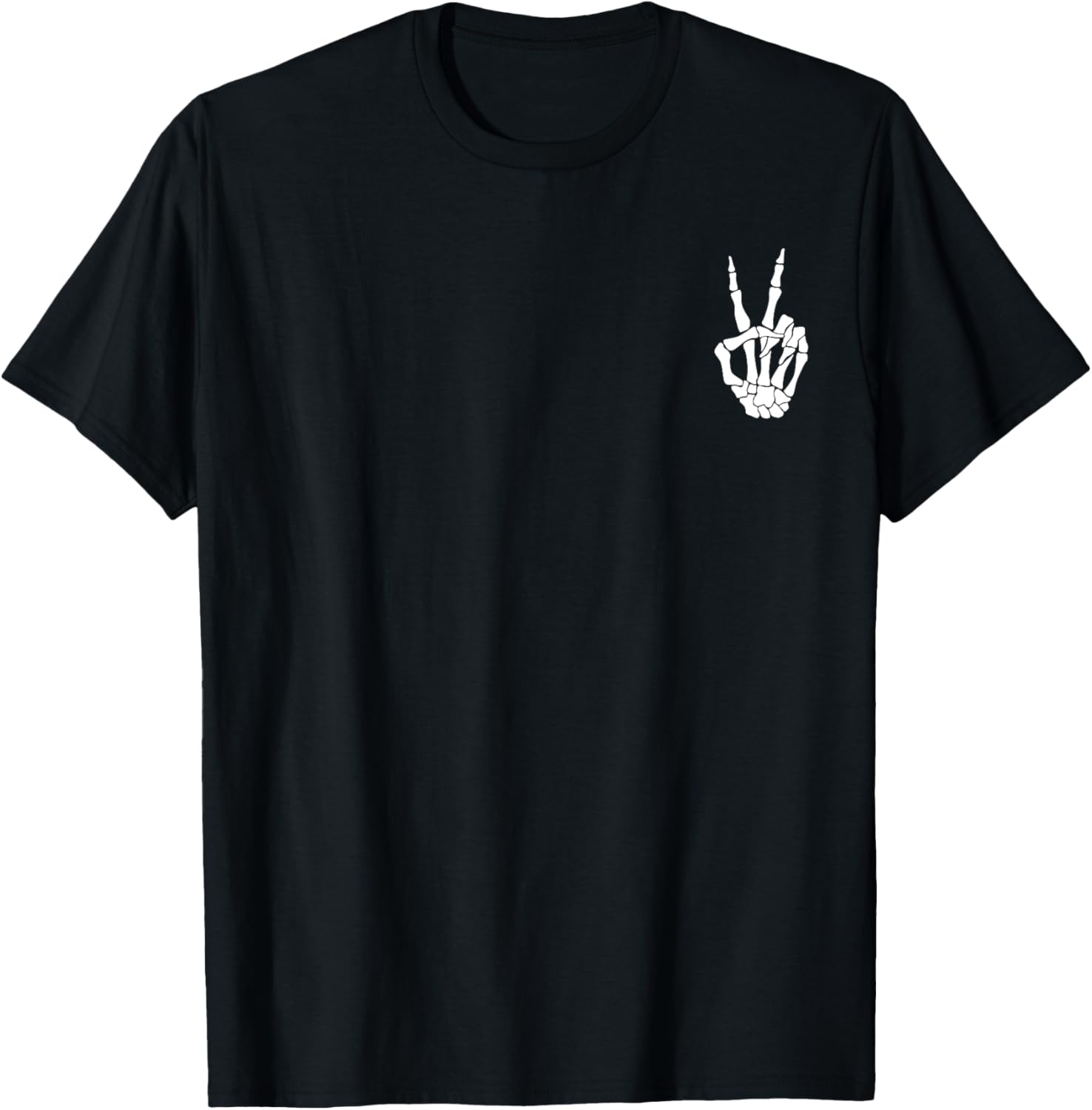Skeleton Hand Peace Sign Bone Halloween Pocket Skeleton T-Shirt