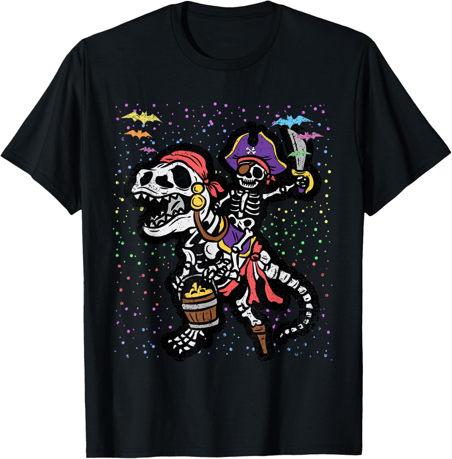 Skeleton Pirate Riding T-Rex Halloween Costume Dinosaur Boys T-Shirt