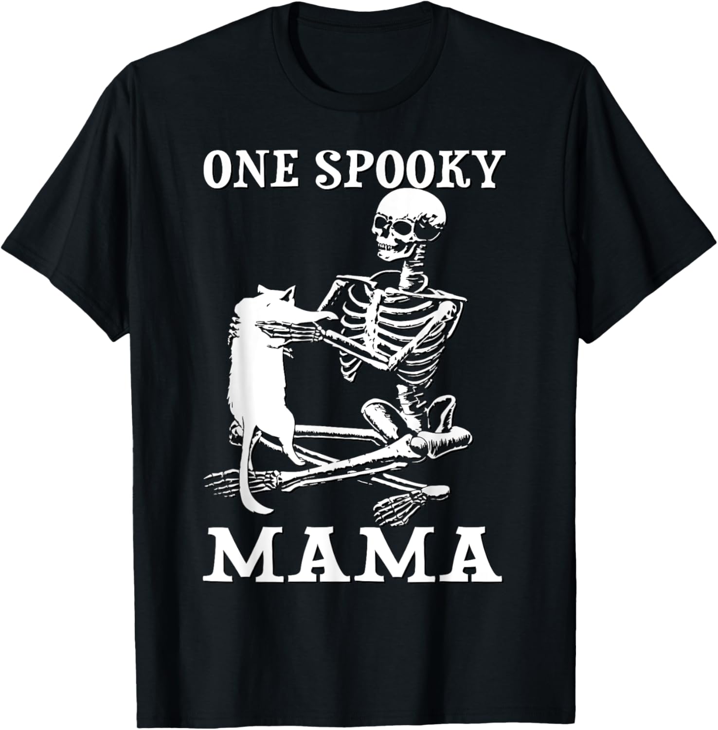 Skeleton Holding A Cat One Spooky Mamaa Halloween Costume T-Shirt