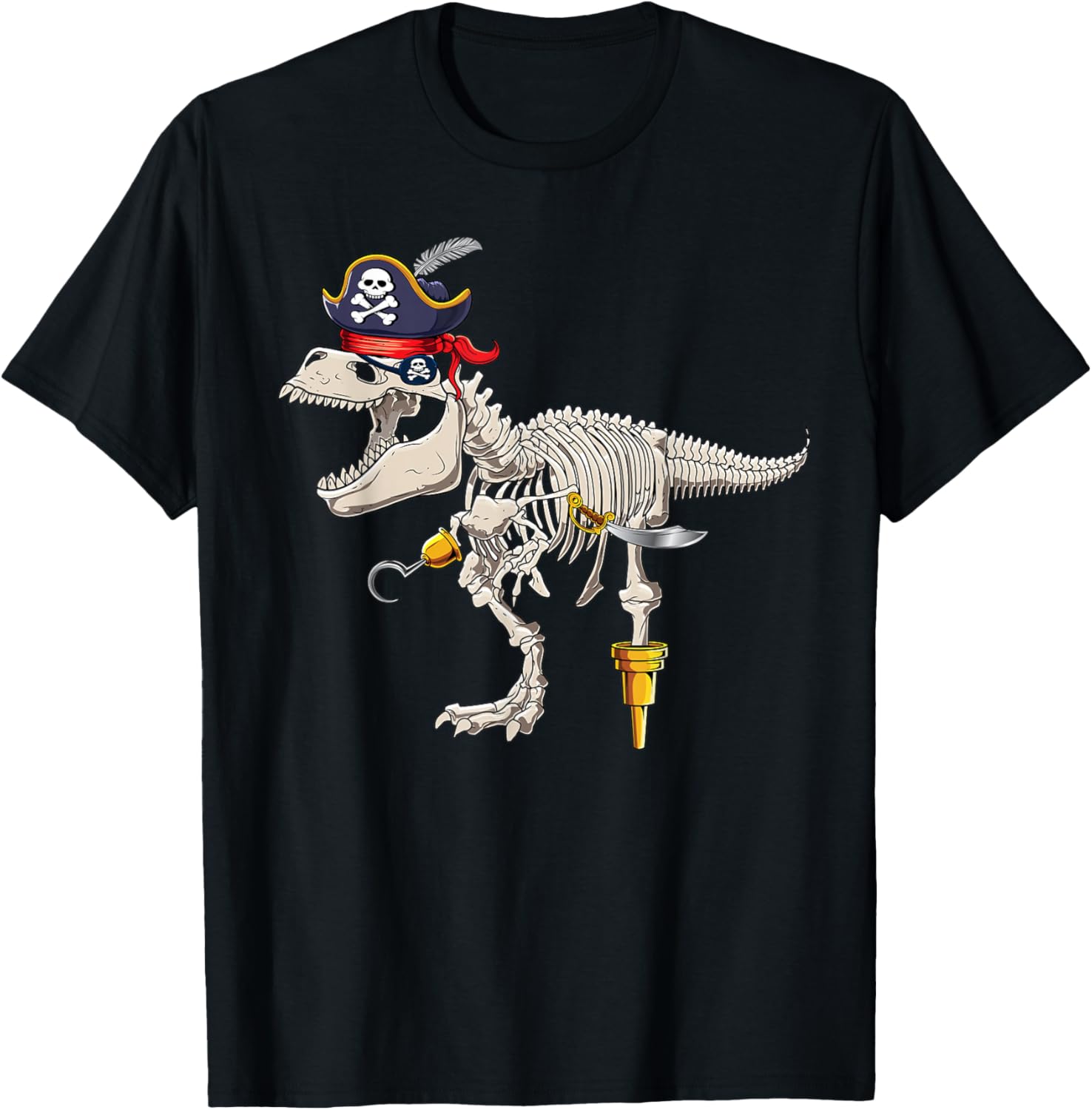 Skeleton T-Rex Dinosaur Pirate Trick or Treat Halloween Boys T-Shirt