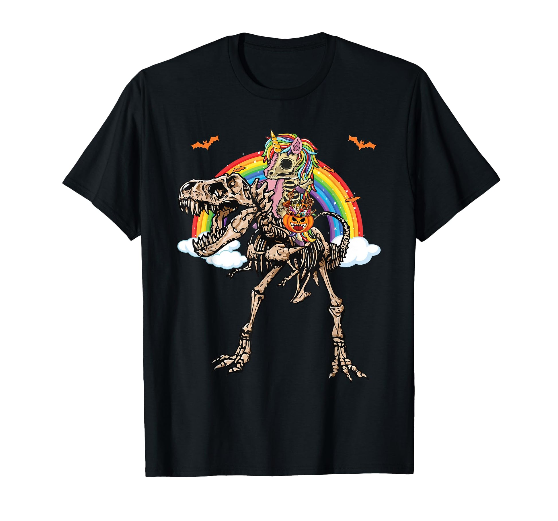 Skeleton Unicorn Riding Dinosaur T Rex Halloween T-Shirt