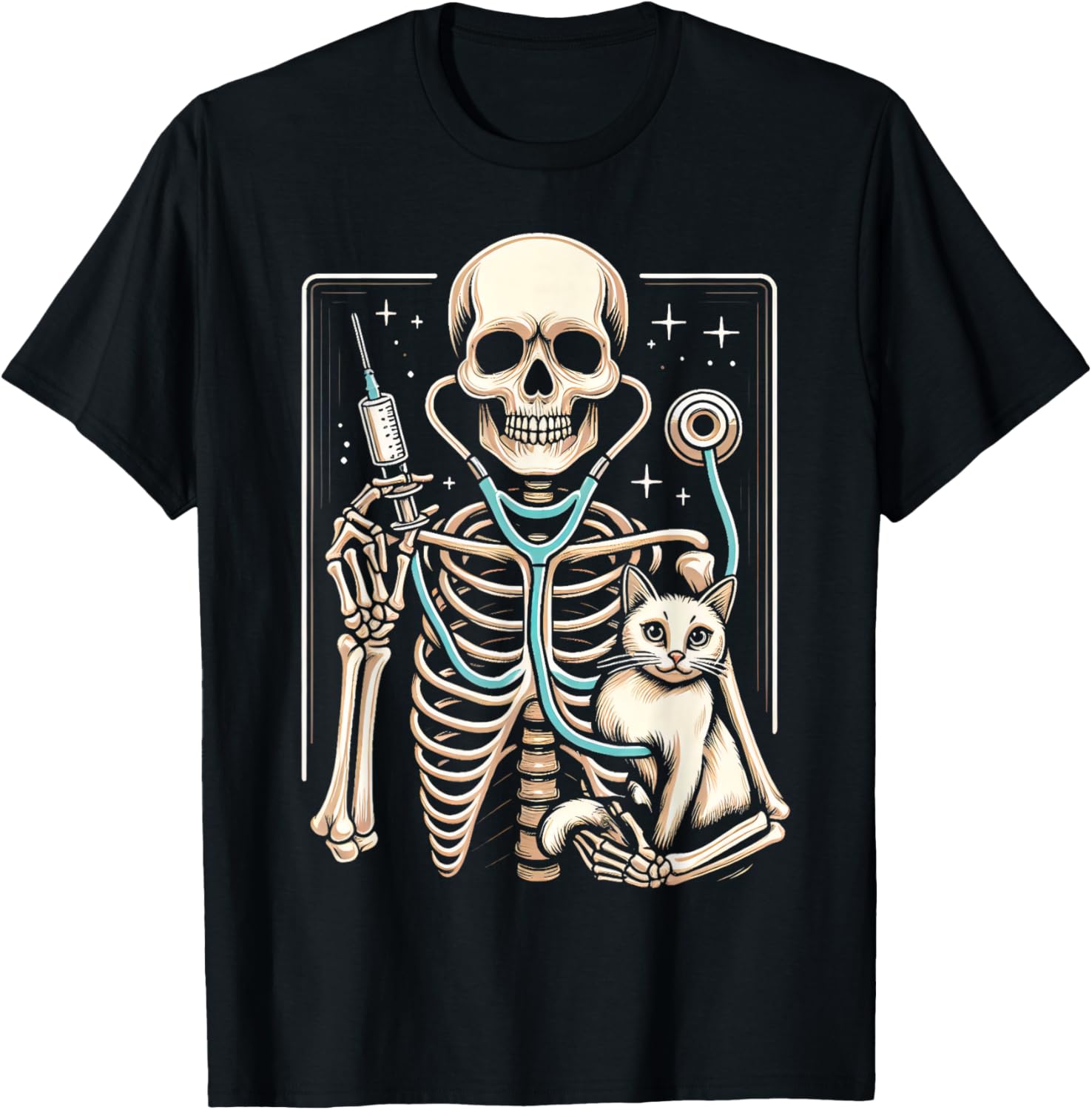 Skeleton Hug Cat Vet Tech Veterinarian Veterinary Halloween T-Shirt
