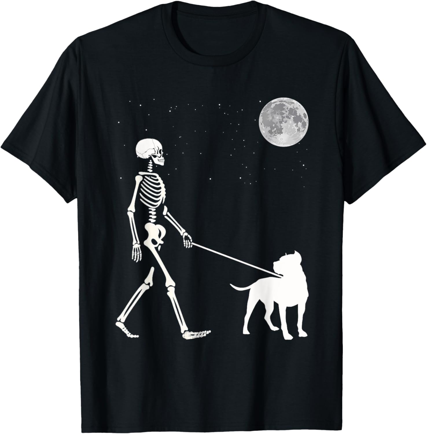 Fun Skeleton Walking Pitbull Dog Full Moon T-Shirt