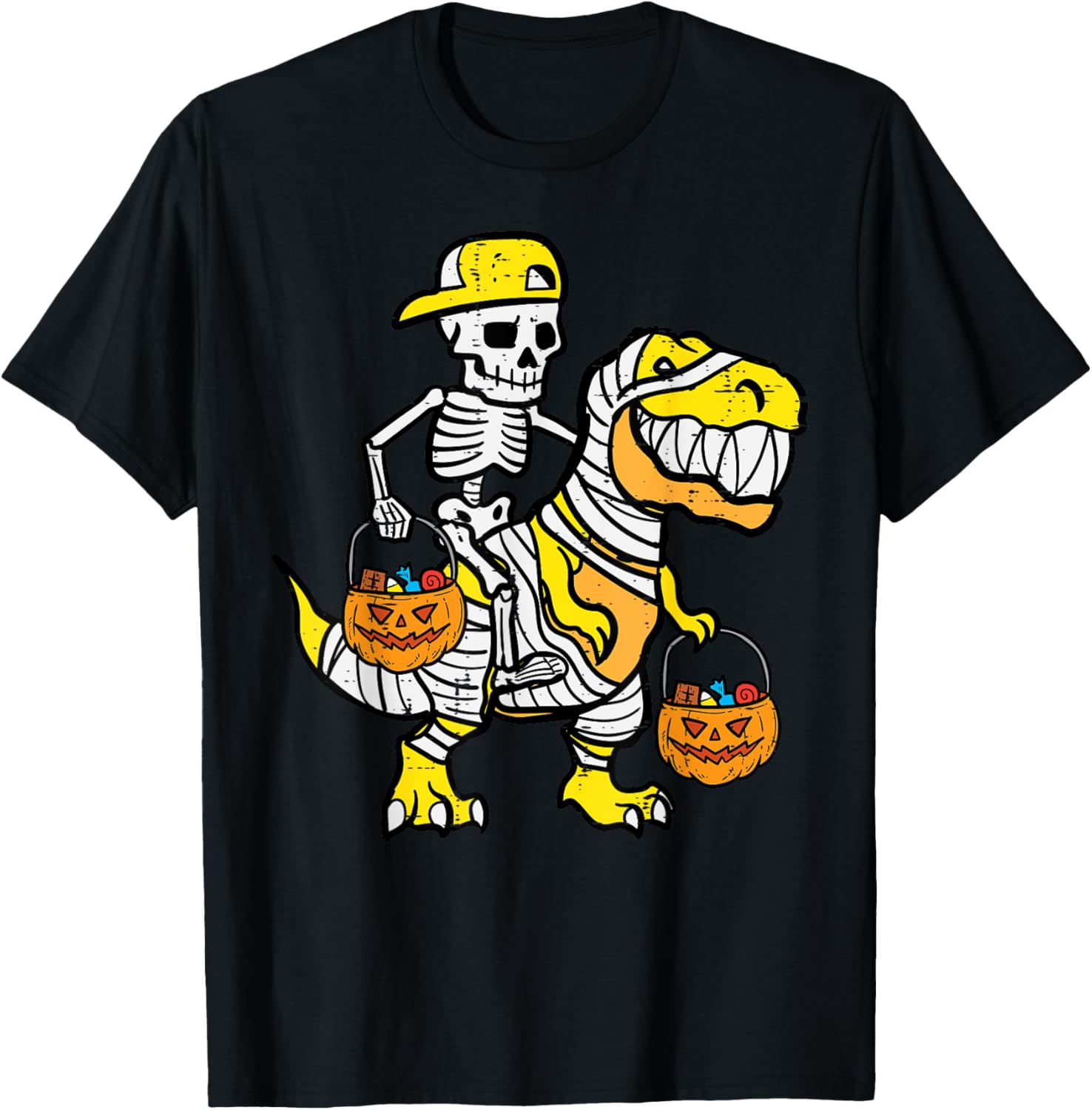 Skeleton Yellow Cap Dino Toddler Boys Halloween Kids Teen T-Shirt