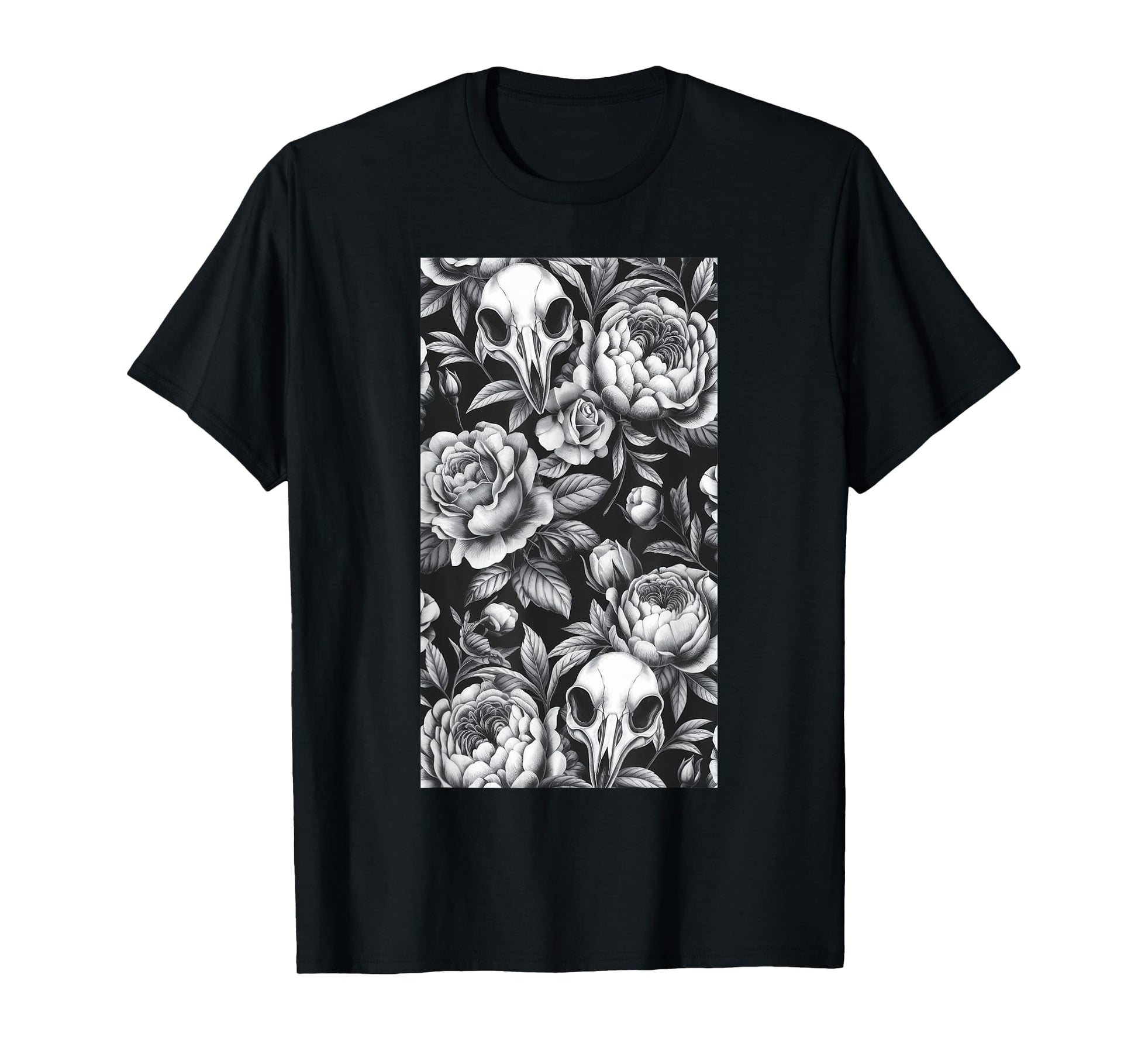 Skull Bird Baroque Vintage Flower Halloween Rose T-Shirt