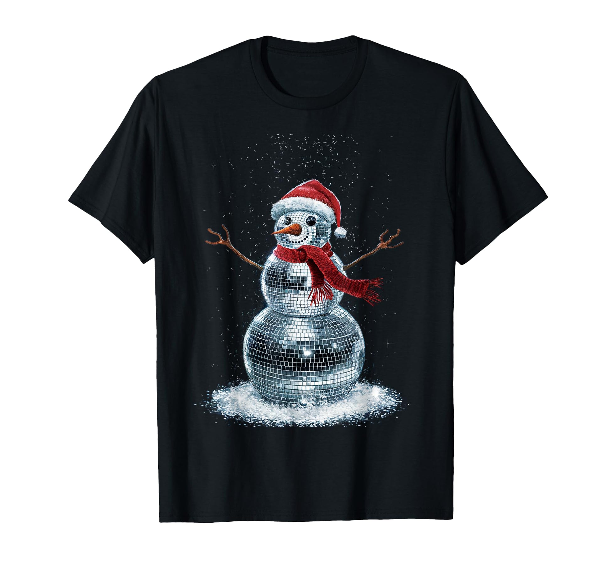 Snowman Christmas Retro Santa Hat Disco Ball Matching Family T-Shirt
