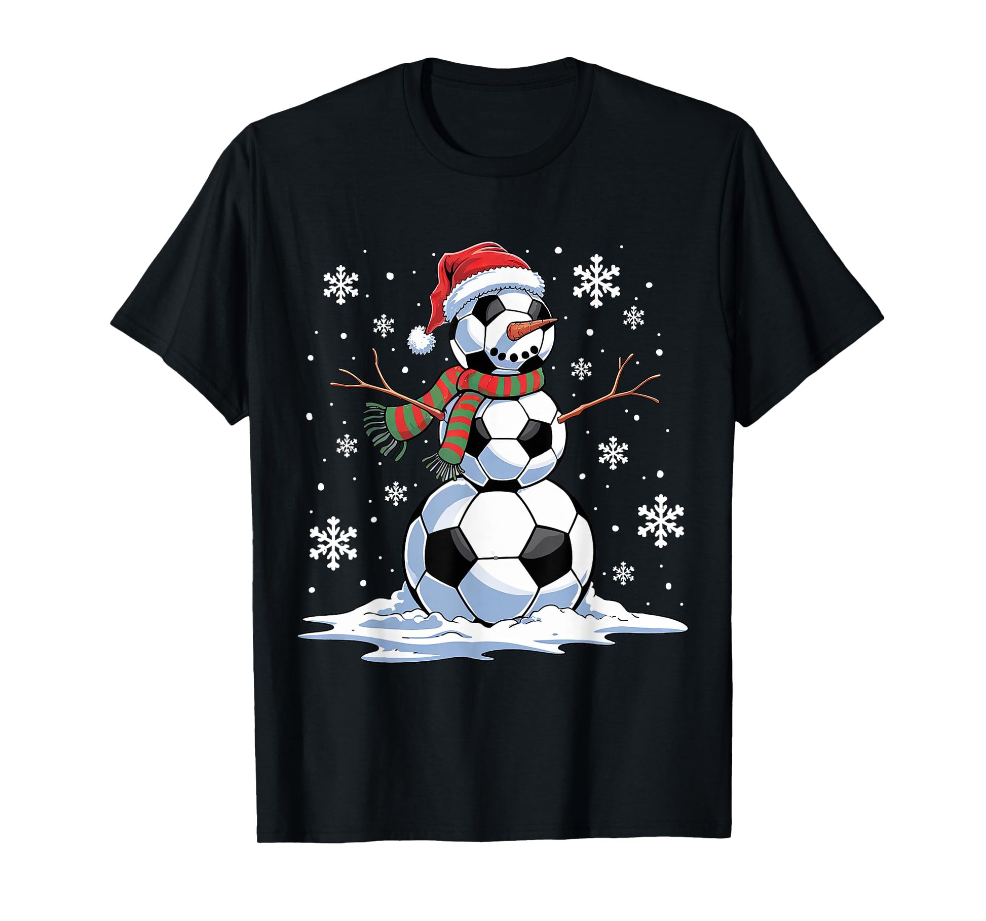 Soccer Snowman Soccer Player Santa Hat Christmas Funny T-Shirt